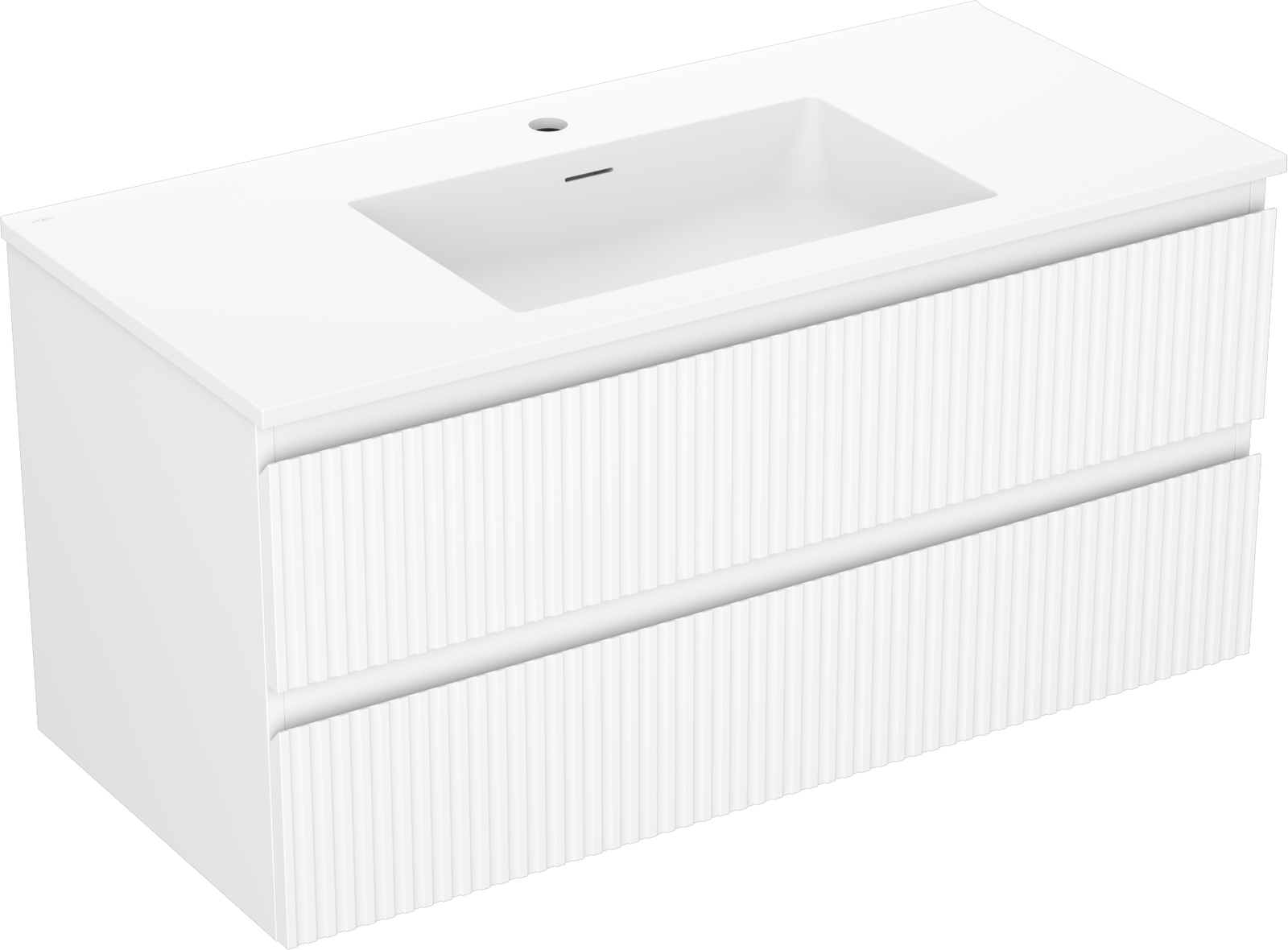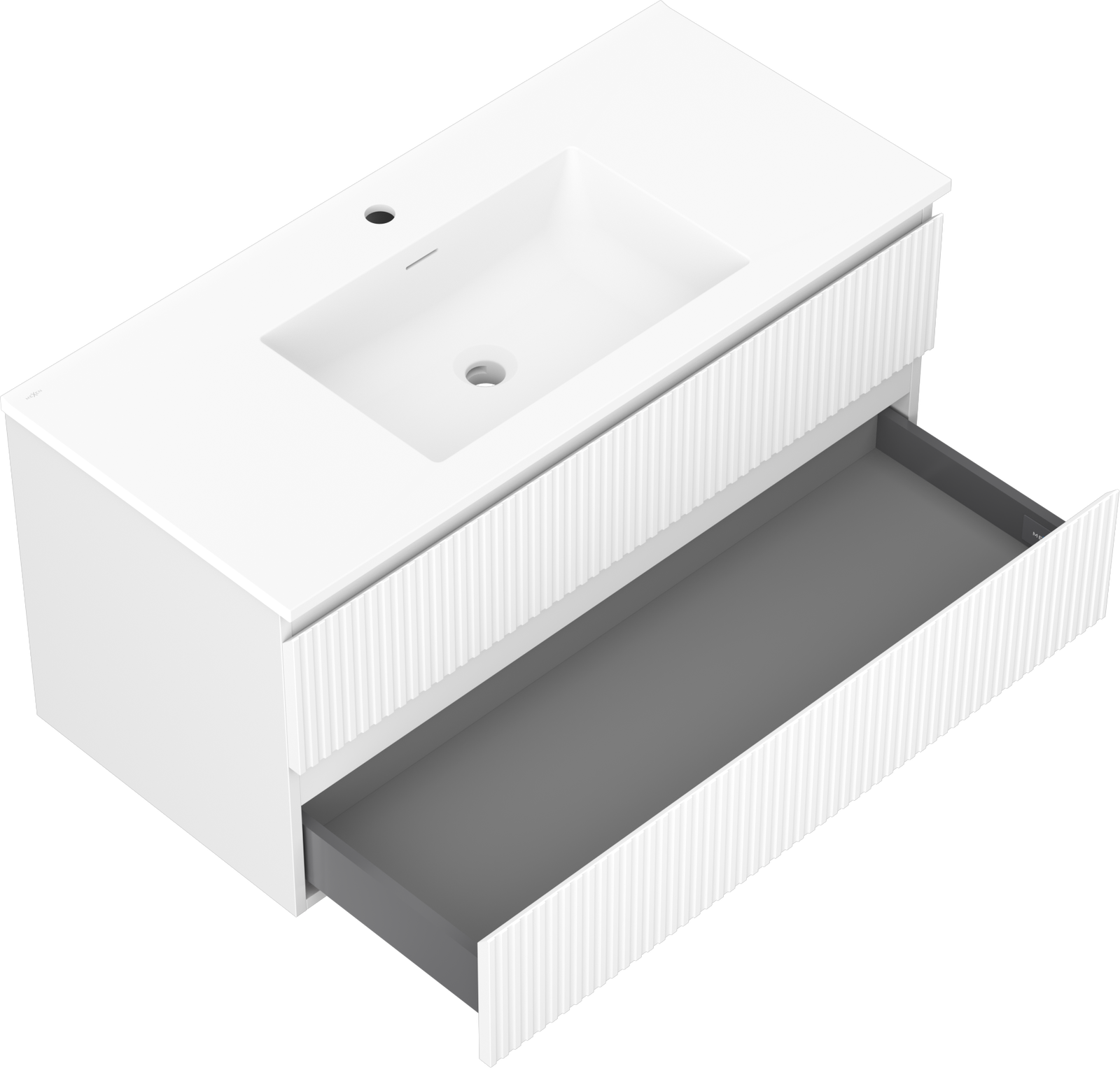 Mexen Rivel Badezimmerschrank 100 cm mit Waschbecken Otis, 2 Schubladen, geriffelt, weiß matt - 91A20-10047-2-BFF01-W18M01