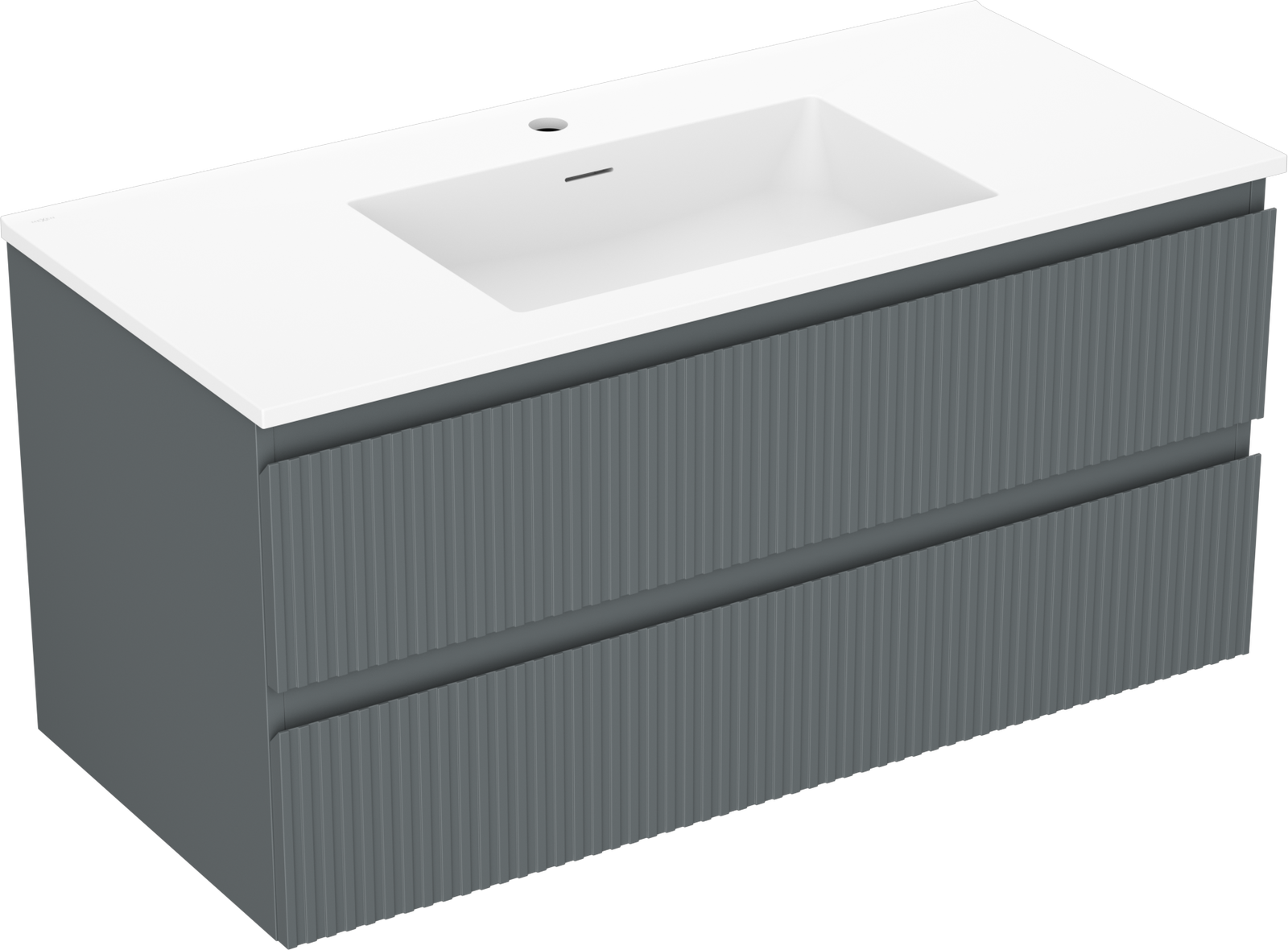 Mexen Rivel Badezimmerschrank 100 cm mit Waschbecken Otis, 2 Schubladen, geriffelt, graphit matt/weiß matt -