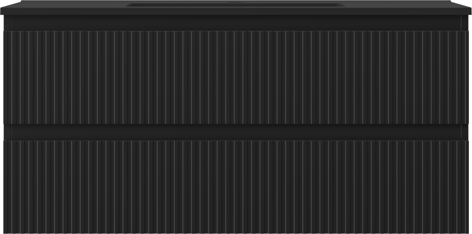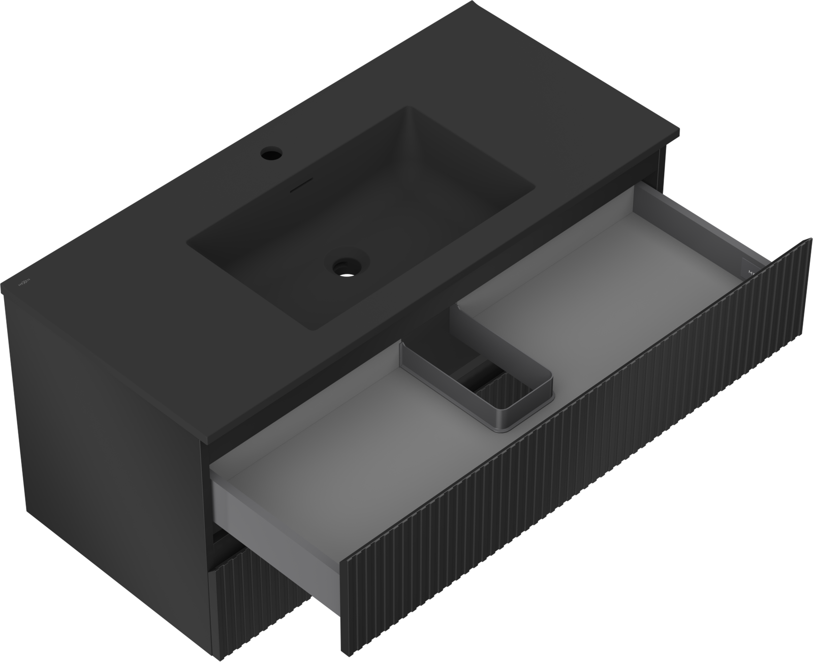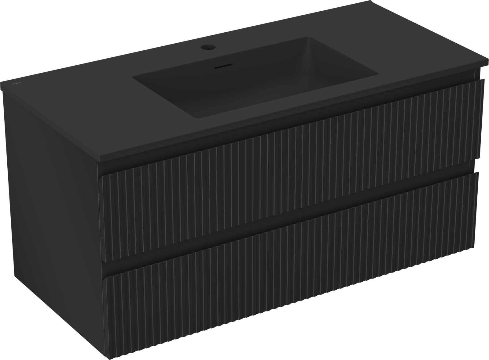 Mexen Rivel Badezimmerschrank 100 cm mit Waschbecken Otis, 2 Schubladen, gerillt, schwarz matt - 91A20-10047-2-BFF71-W18M71