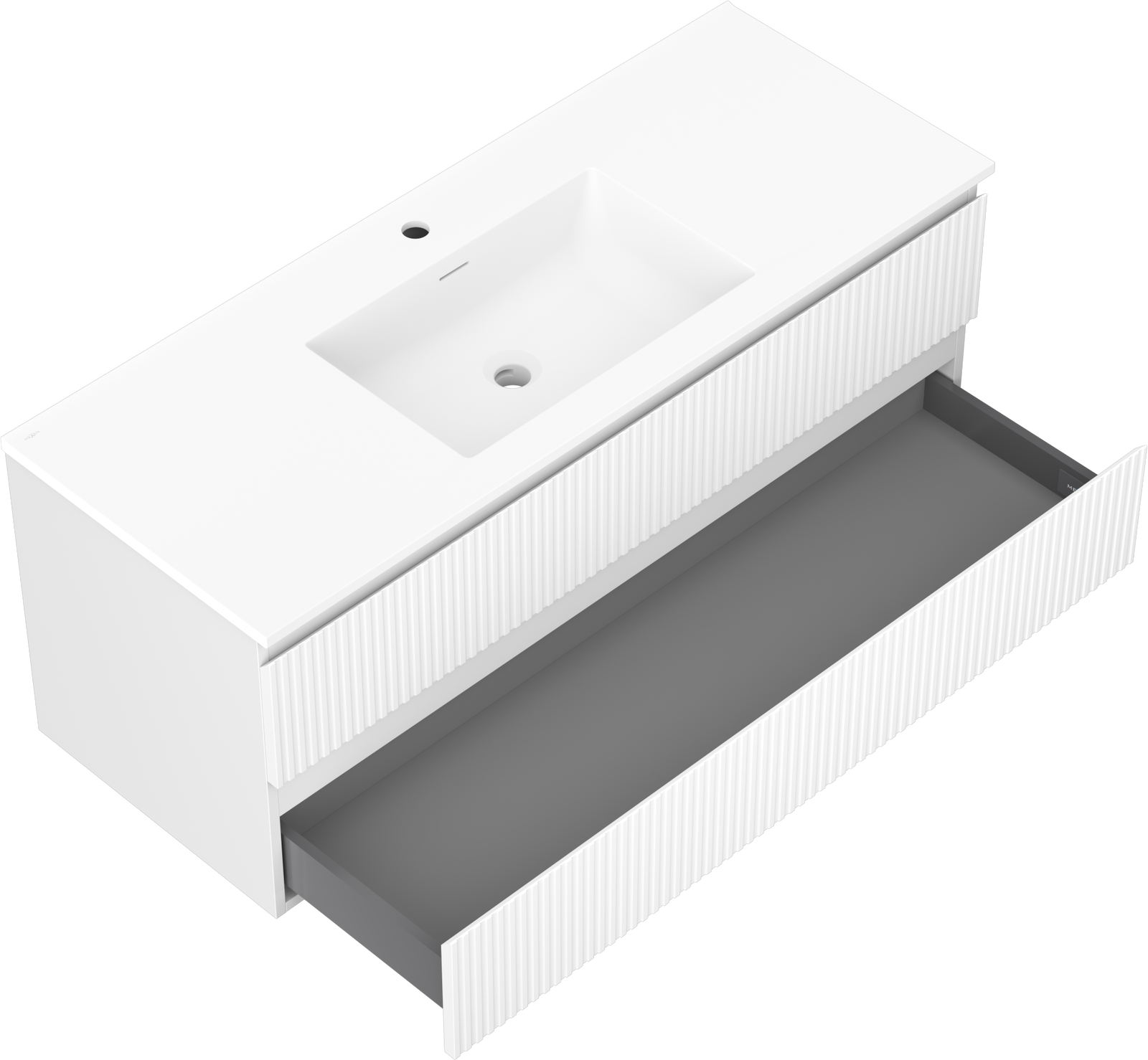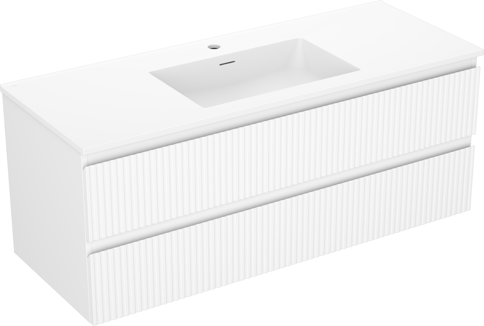 Mexen Rivel 120 cm Badezimmerunterschrank mit Waschbecken Otis, 2 Schubladen, gerillt, weiß matt - 91A20-12047-2-BFF01-W18M01