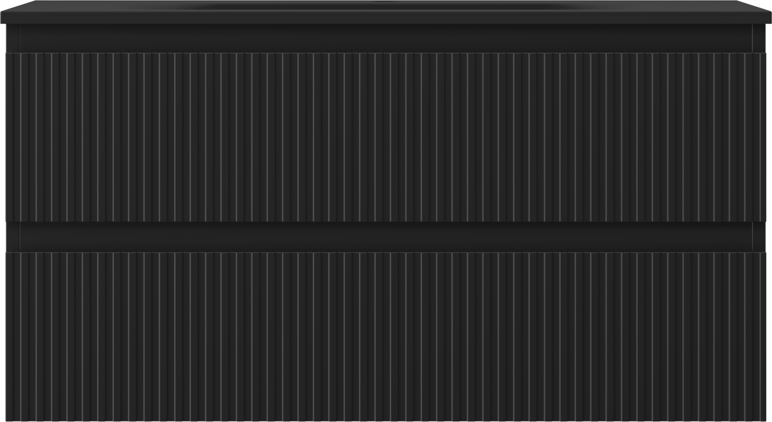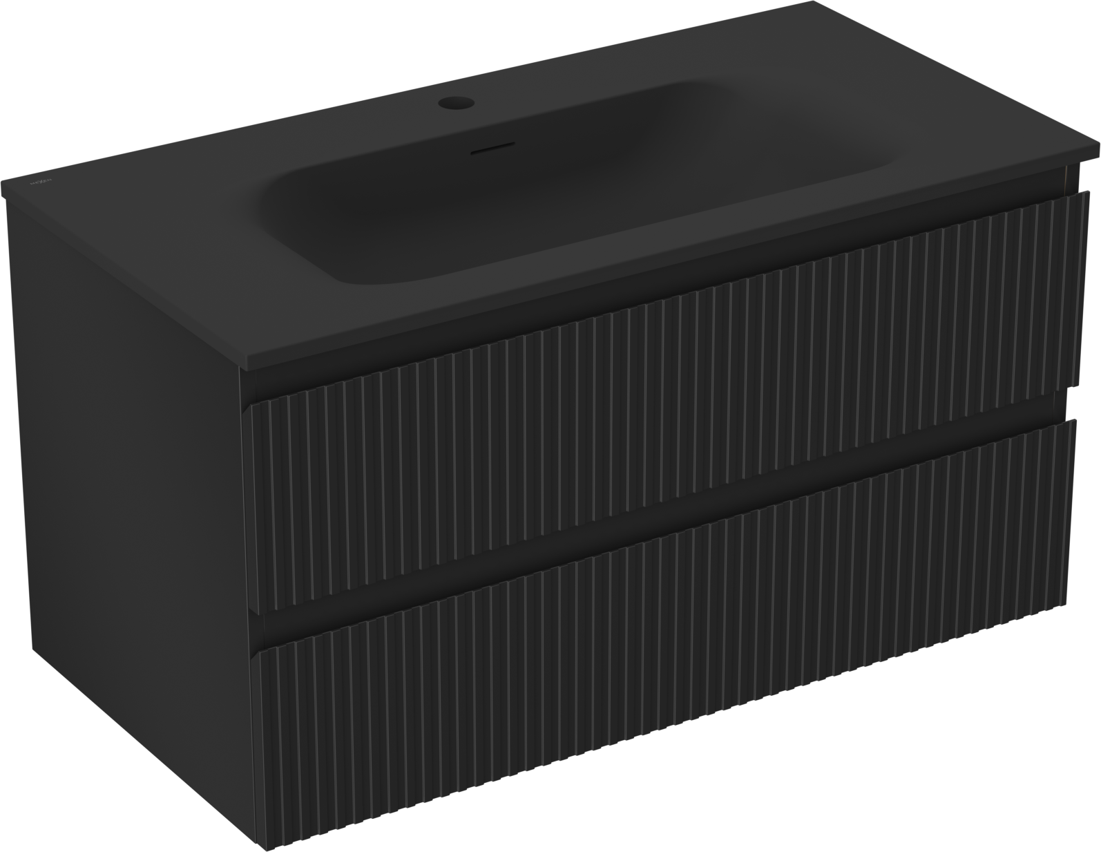 Mexen Rivel Badezimmerunterschrank 90 cm mit Waschbecken Vela, 2 Schubladen, gerillt, schwarz matt - 91A20-09047-2-BFF71-W23M71