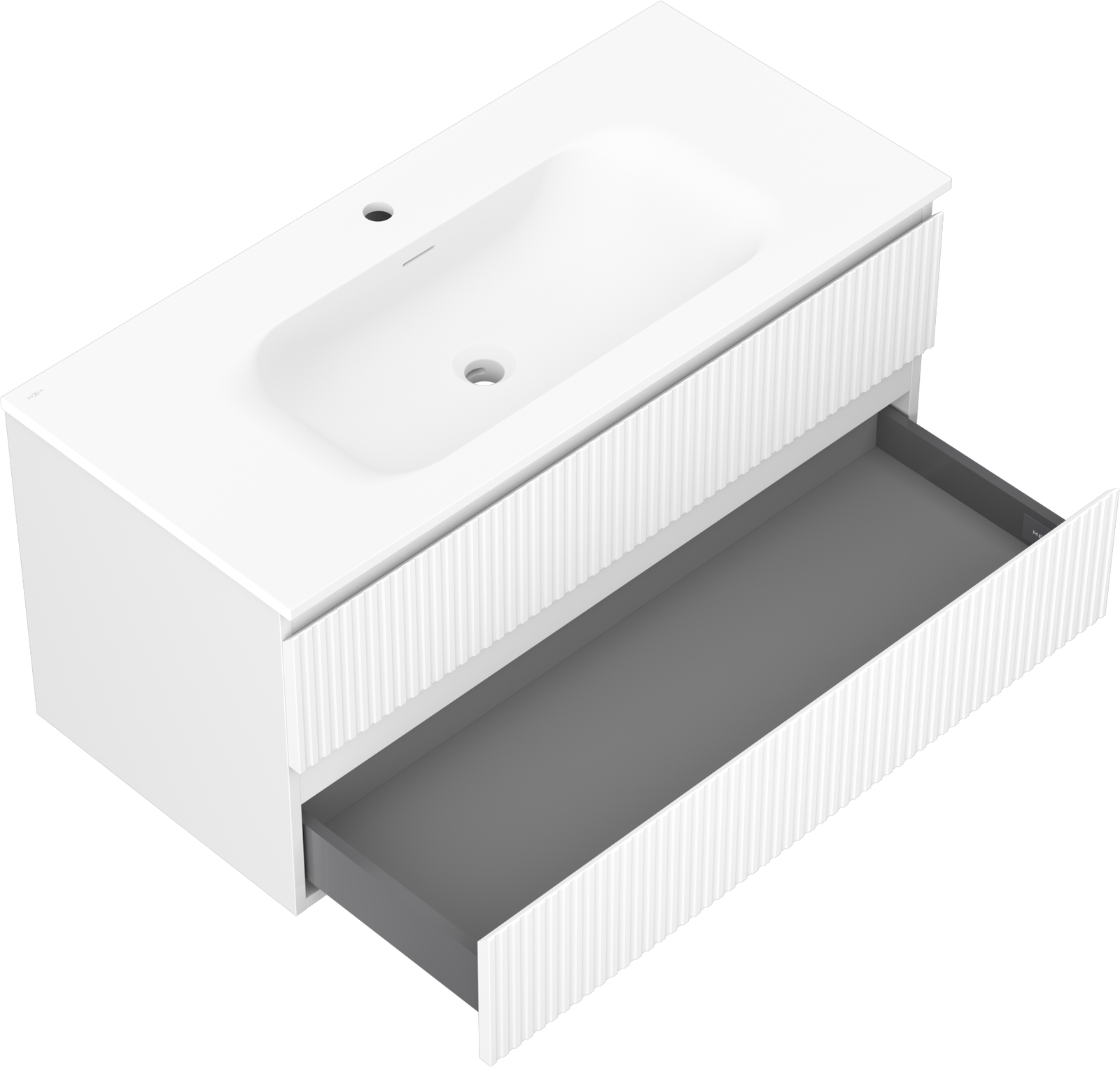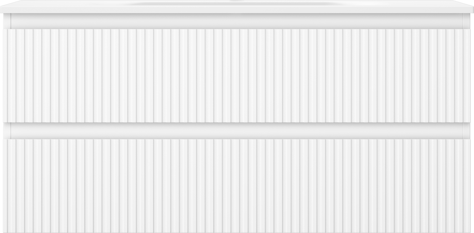 Mexen Rivel Badezimmerschrank 100 cm mit Waschbecken Vela, 2 Schubladen, geriffelt, weiß matt - 91A20-10047-2-BFF01-W23M01