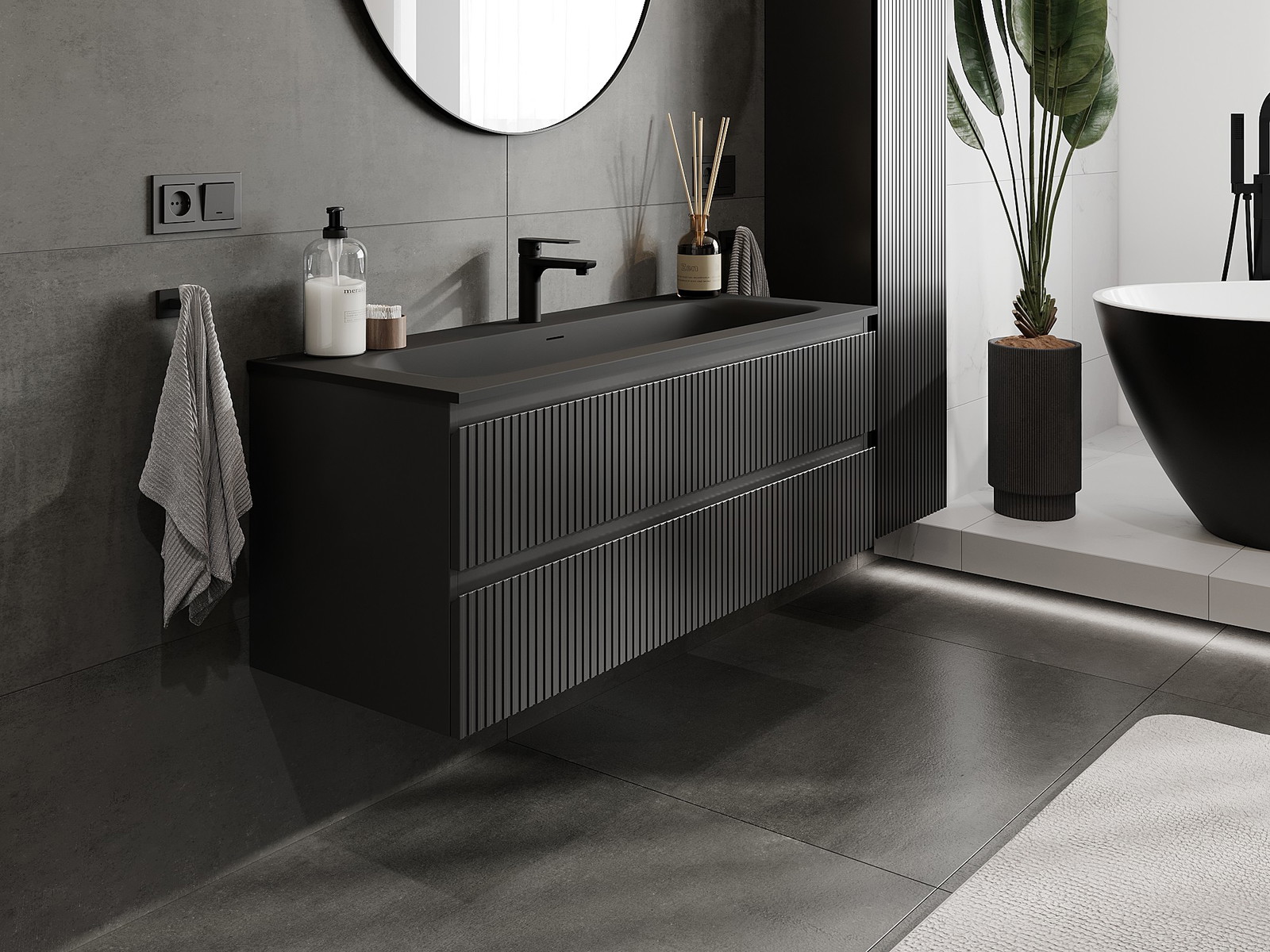 Unsere modularen Badezimmermöbel können in verschiedenen Farbkonfigurationen miteinander kombiniert werden, wodurch eine vollständige Personalisierung ermöglicht wird. Man kann sowohl das Aussehen als auch die Funktionen der einzelnen Elemente auswählen, was es erlaubt, die Möbel an eigene stilistische und funktionale Vorlieben anzupassen.