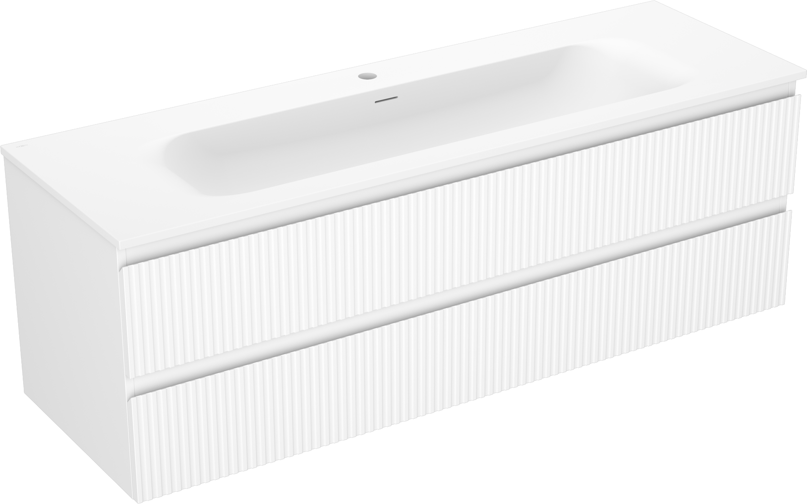 Mexen Rivel Badezimmermöbel 140 cm mit Waschbecken Vela, 2 Schubladen, geriffelt, weiß matt - 91A20-14047-2-BFF01-W23M01