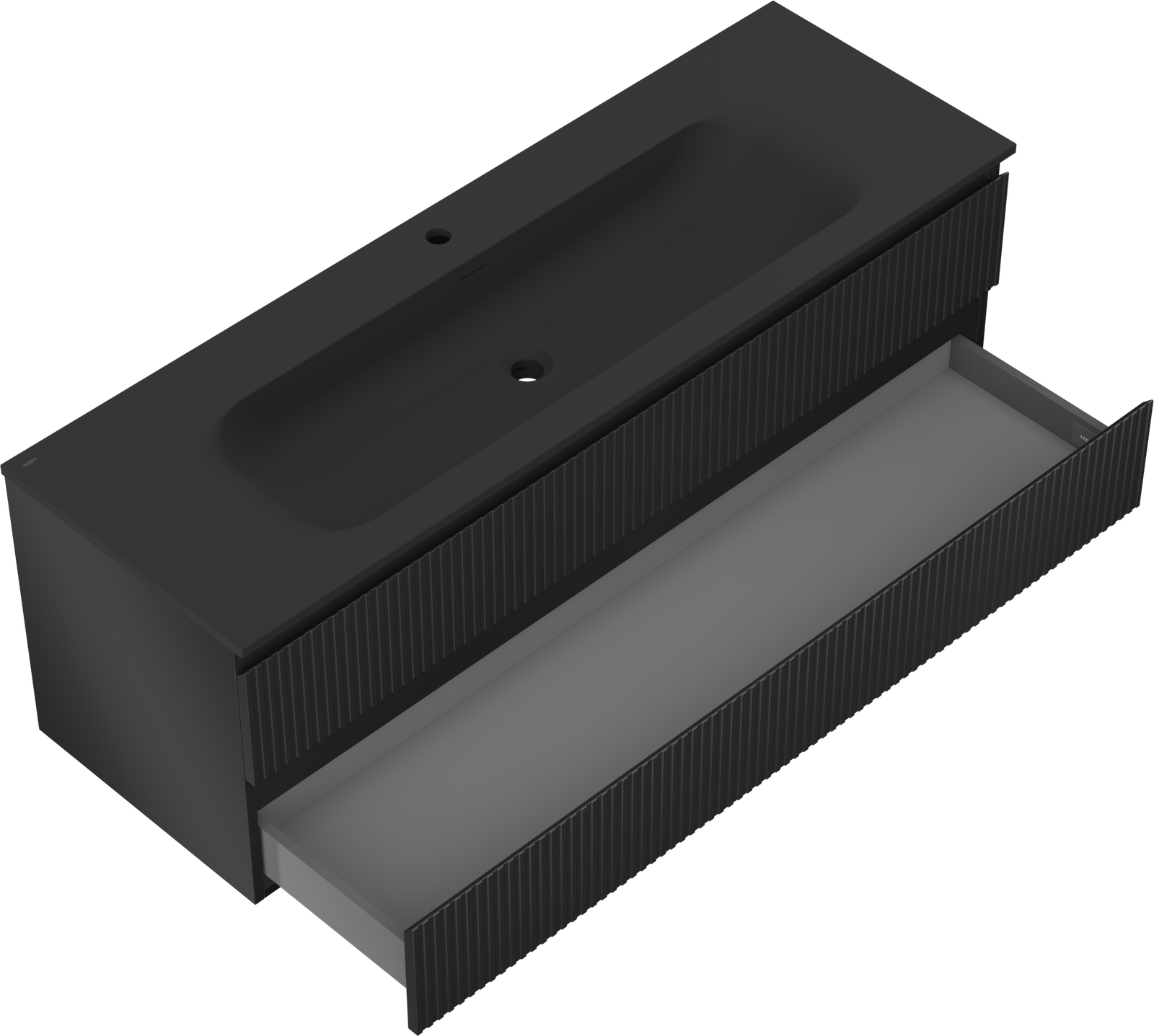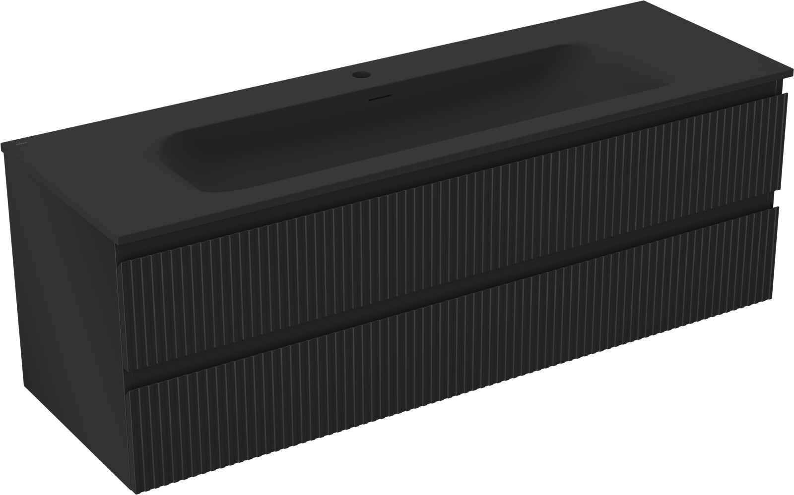 Mexen Rivel Badezimmerschrank 140 cm mit Waschbecken Vela, 2 Schubladen, geriffelt, schwarz matt - 91A20-14047-2-BFF71-W23M71