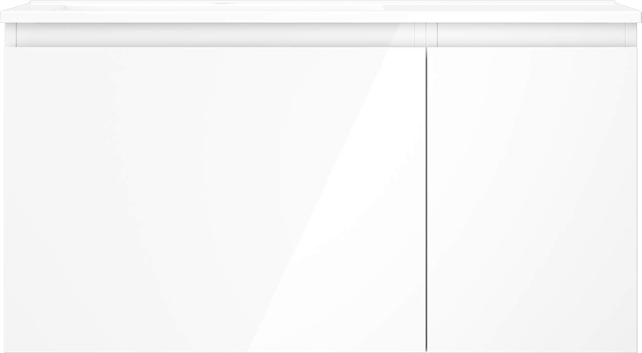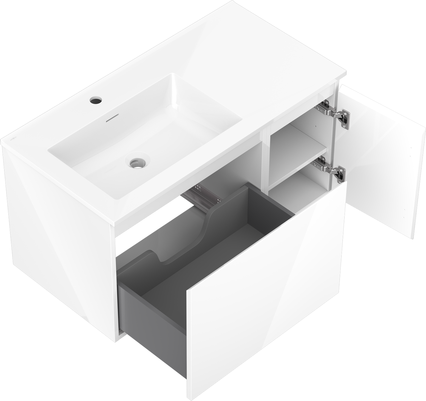 Mexen Orio Badezimmerschrank 90 cm mit Waschbecken Otis links, 1S, 1D, weiß glänzend - 91A13-09047-3-BBFF00-W18L00