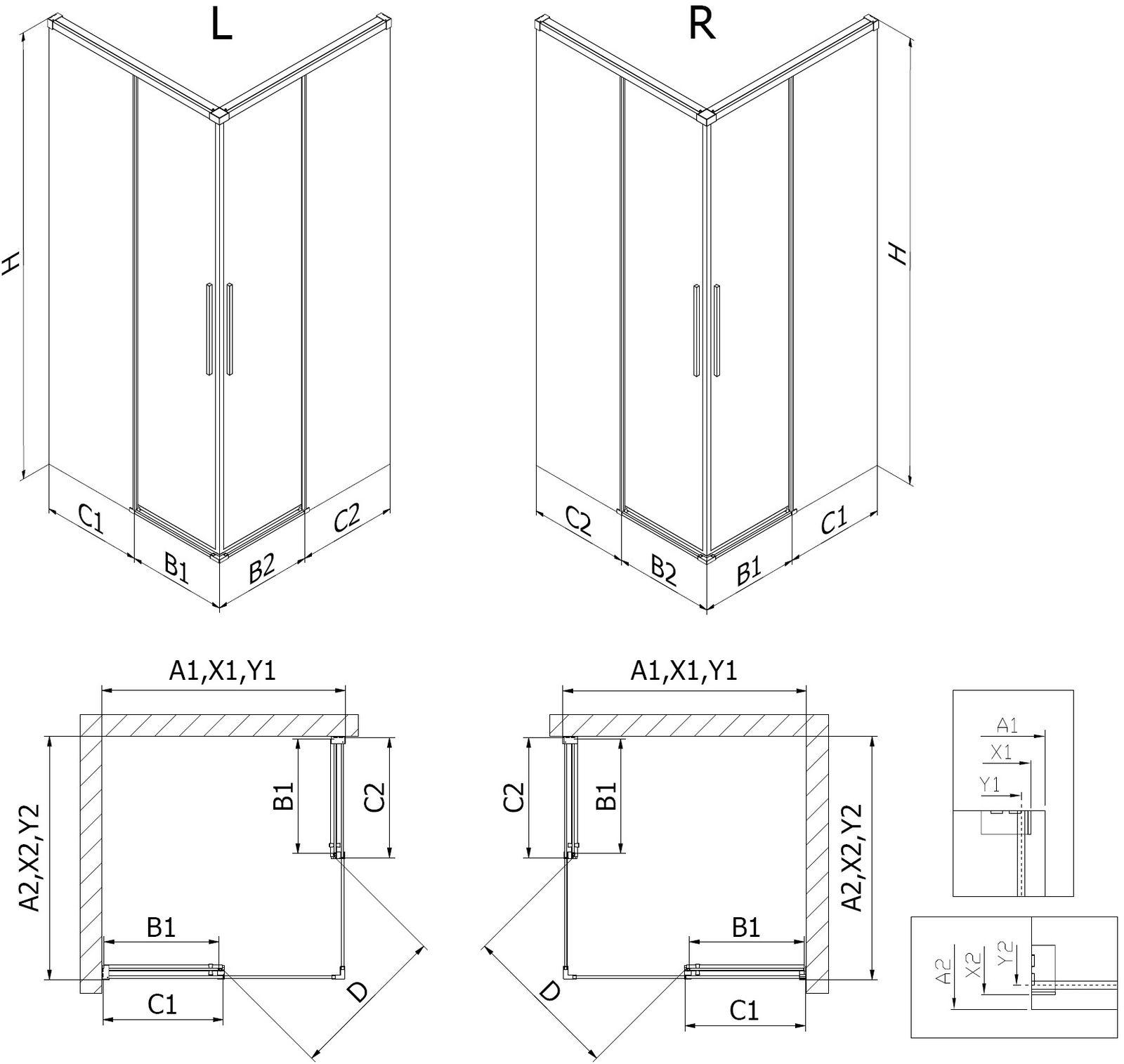 Dank des universellen Montagesystems können die Duschtüren je nach Bedarf rechts oder links montiert werden. Dadurch kannst du problemlos eine Dusche entwerfen, die an den verfügbaren Platz im Badezimmer angepasst ist.