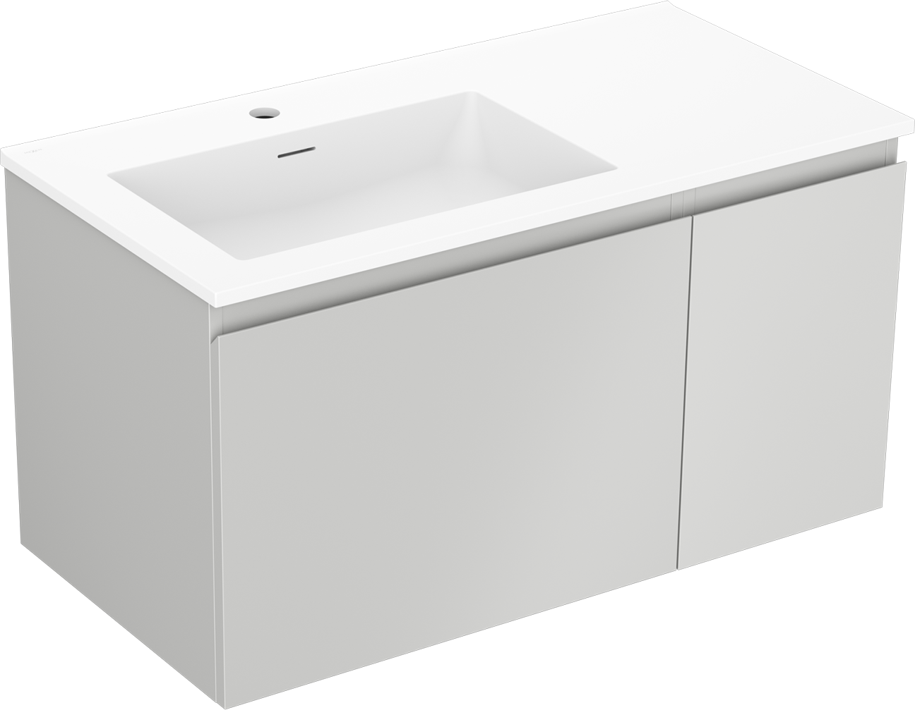 Mexen Orio Badezimmerunterschrank 90 cm mit linkem Waschbecken Otis, 1S, 1D, graumatt/weißmatt - 91A13-09047-3-BBFF62-W18L01