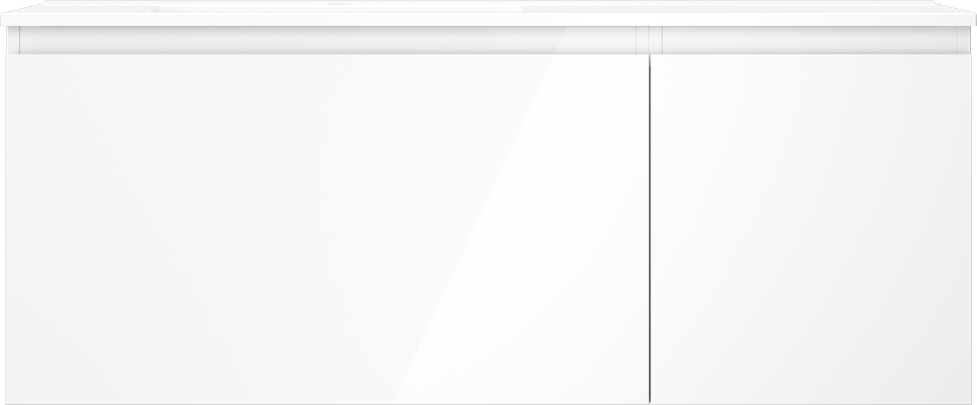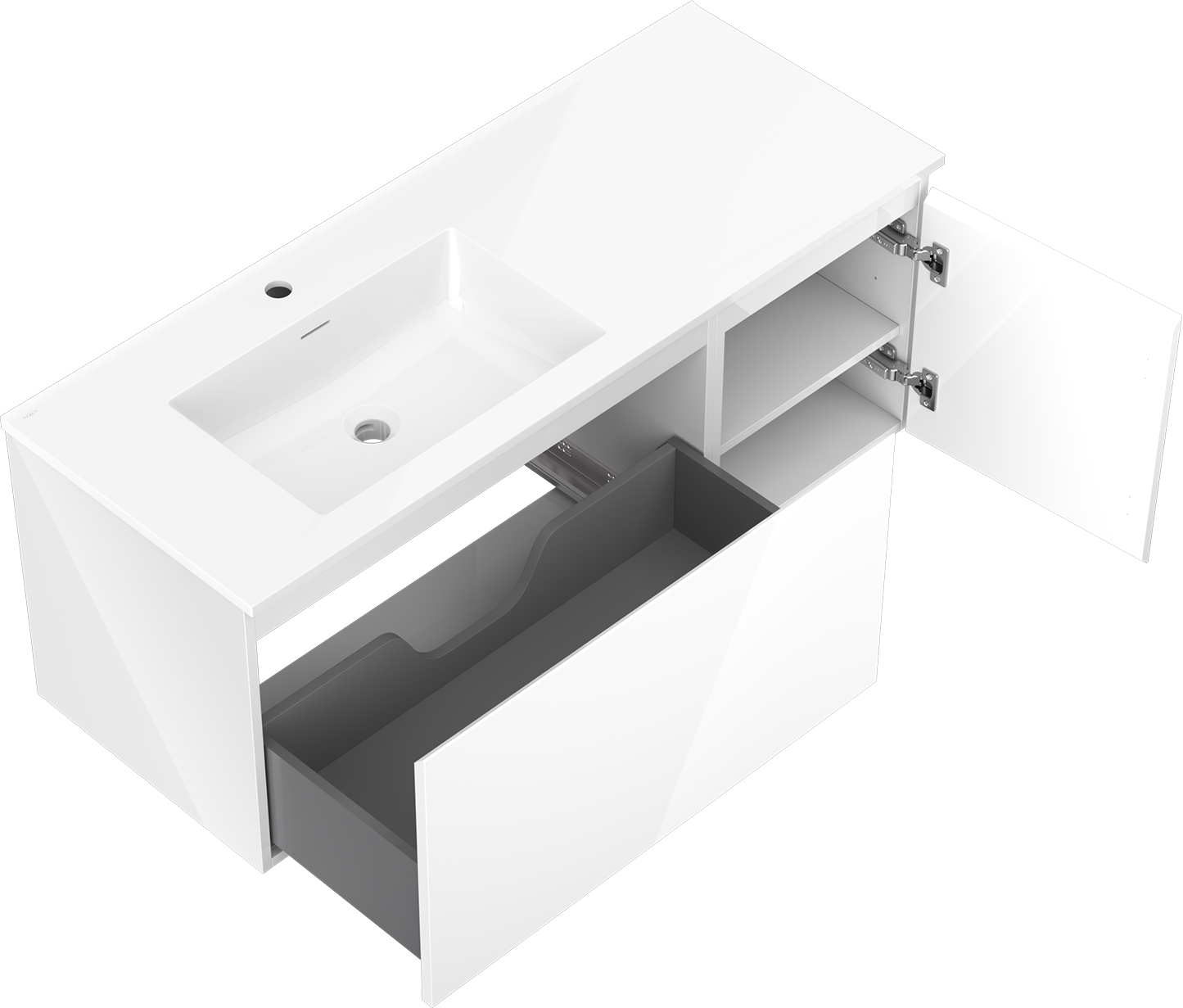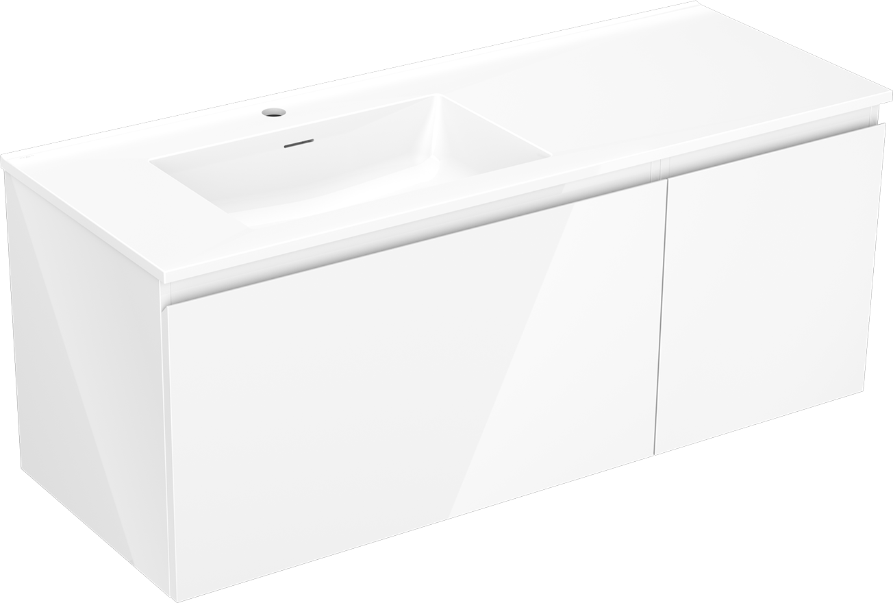 Mexen Orio Badezimmerschrank 120 cm mit Waschbecken Otis links, 1S, 1D, weiß glänzend - 91A13-12047-3-BBFF00-W18L00