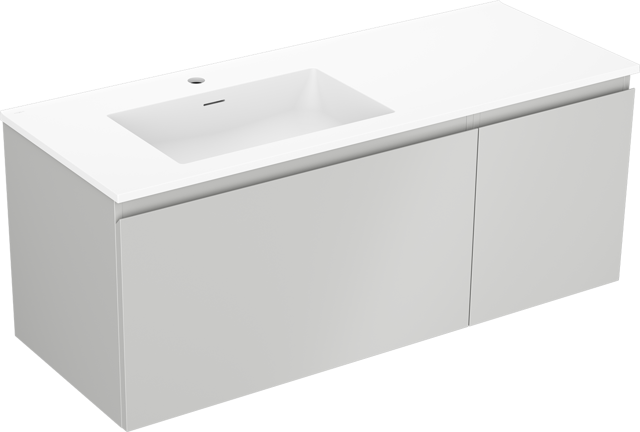 Mexen Orio Badezimmerschrank 120 cm mit Otis Waschbecken links, 1S, 1D, grau matt/weiß matt - 91A13-12047-3-BBFF62-W18L01