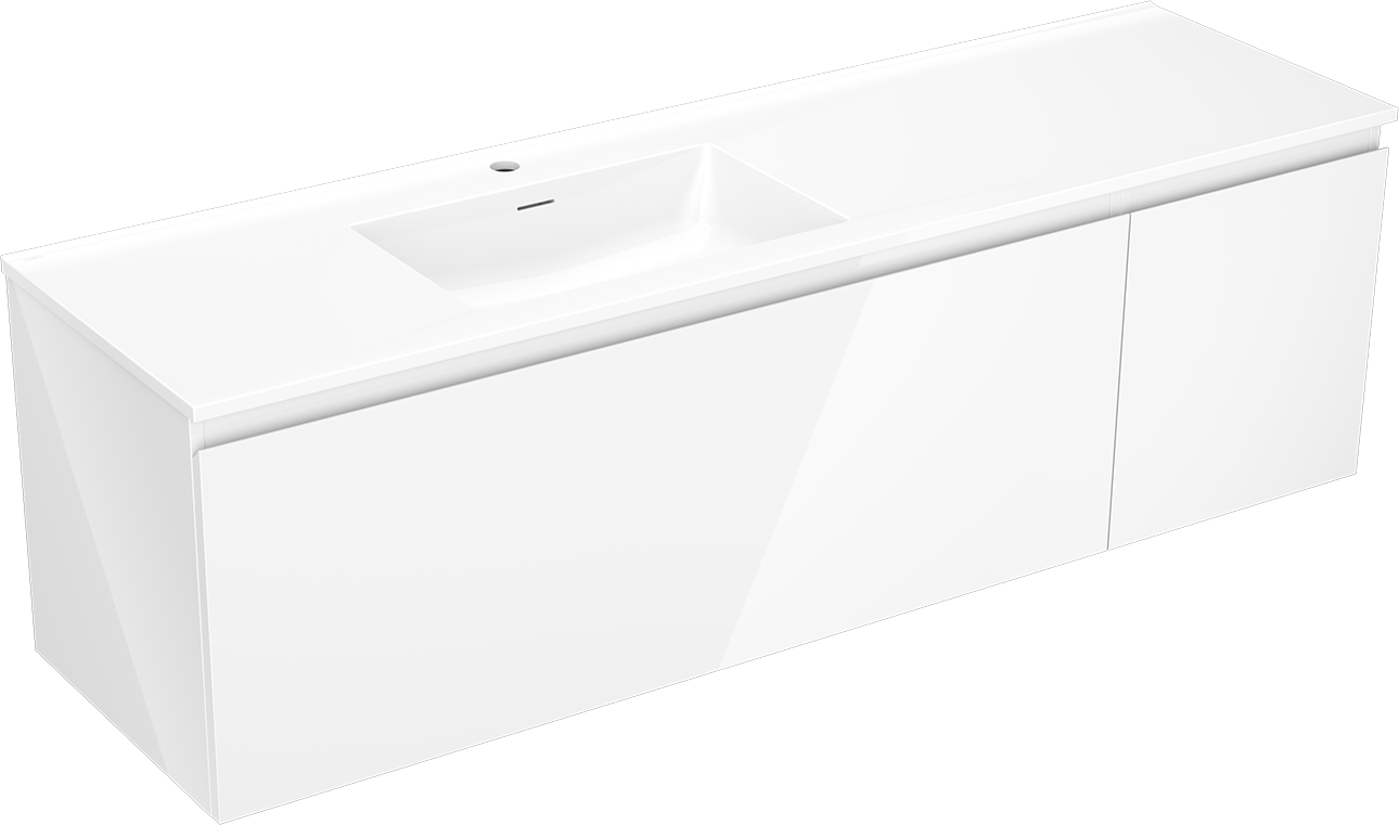 Mexen Orio Badschrank 160 cm mit Waschbecken Otis links, 1S, 1D, weiß glänzend - 91A13-16047-3-BBFF00-W18L00