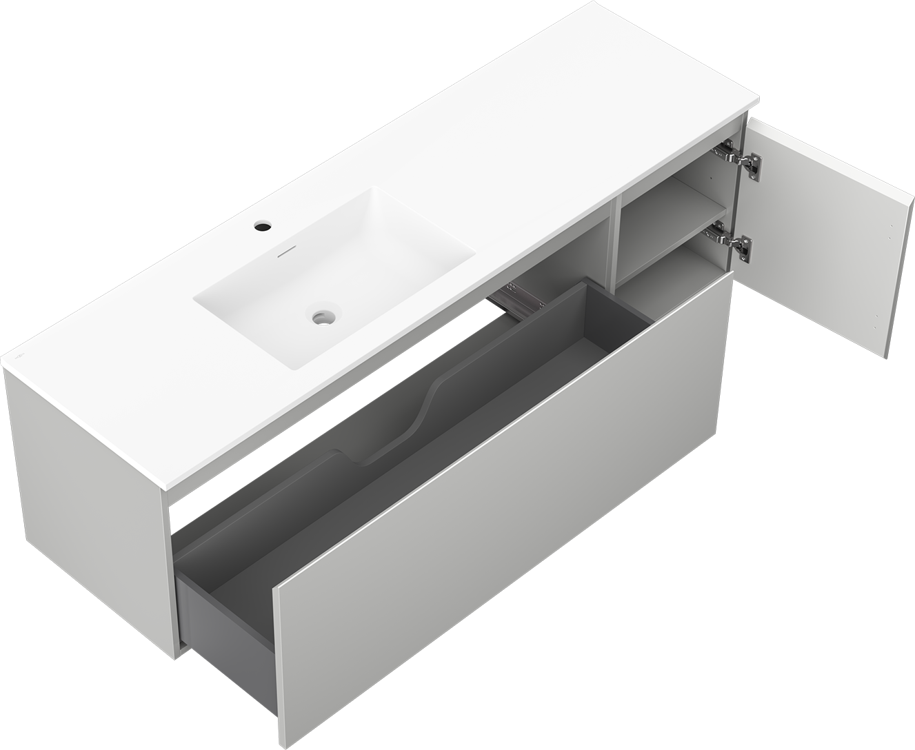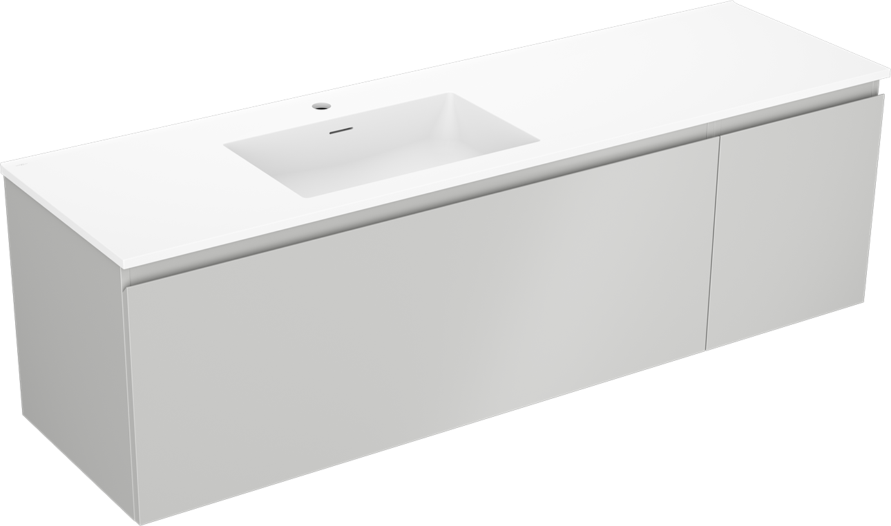Mexen Orio Badezimmerschrank 160 cm mit linkem Waschbecken Otis, 1S, 1D, grau matt/weiß matt - 91A13-16047-3-BBFF62-W18L01