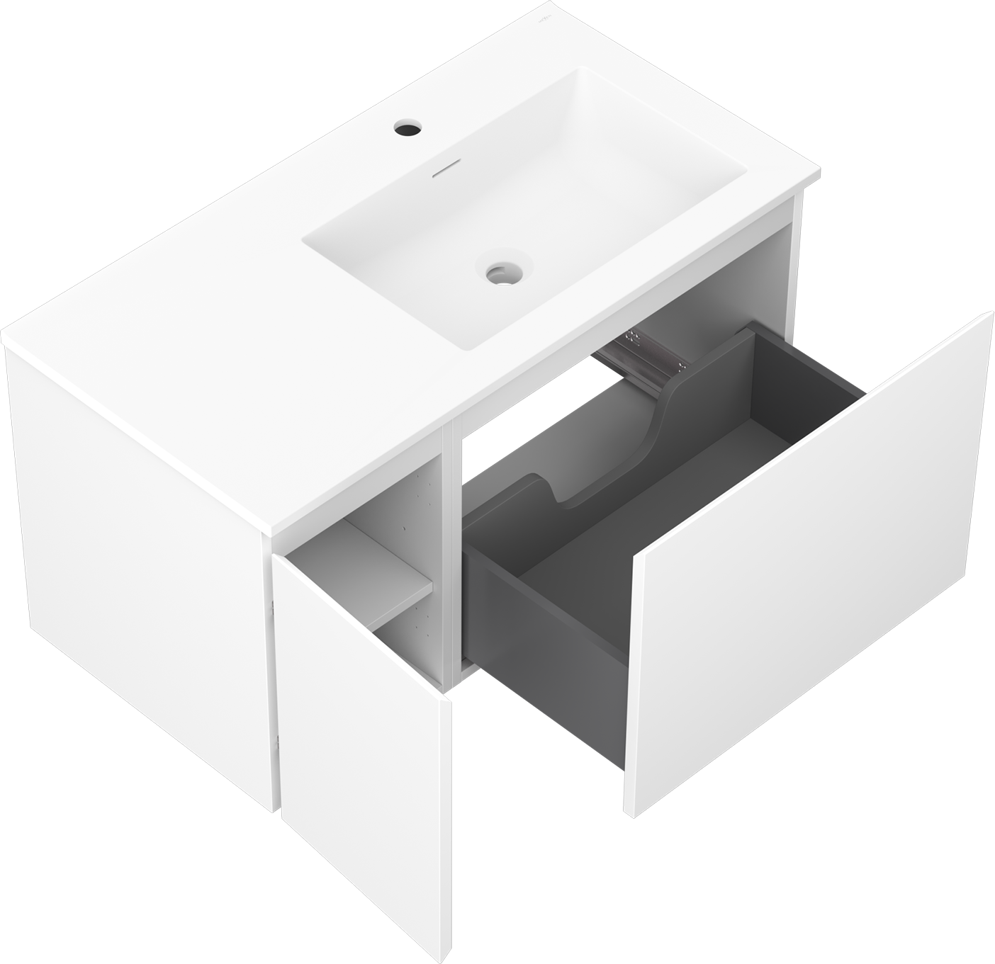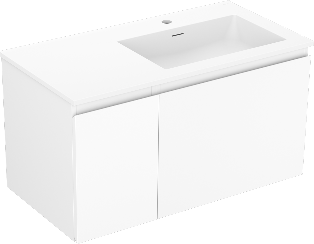 Mexen Orio Badezimmerschrank 90 cm mit rechter Otis-Waschtisch, 1S, 1D, matt weiß - 91A13-09047-3-BBFF01-W18P01