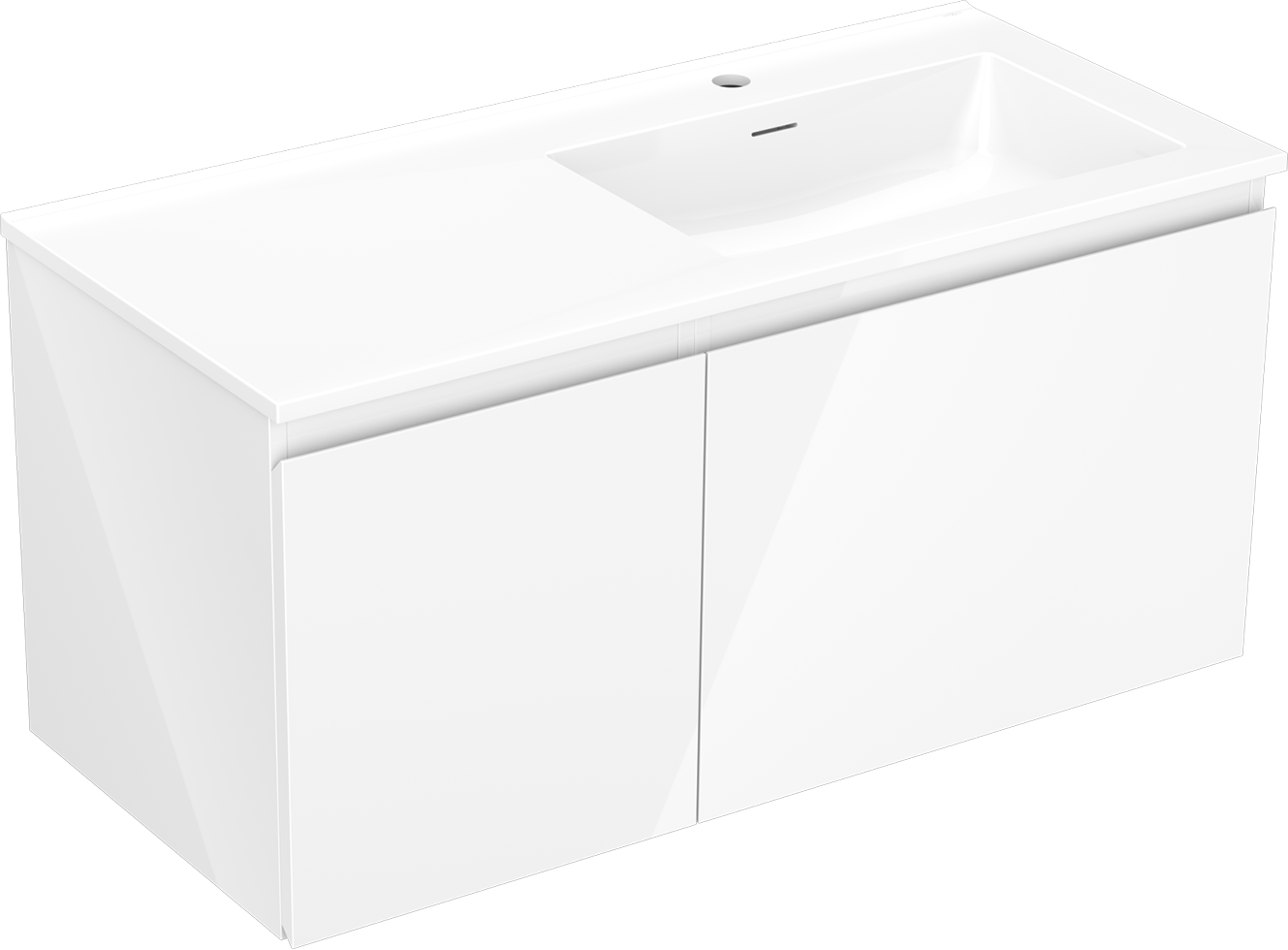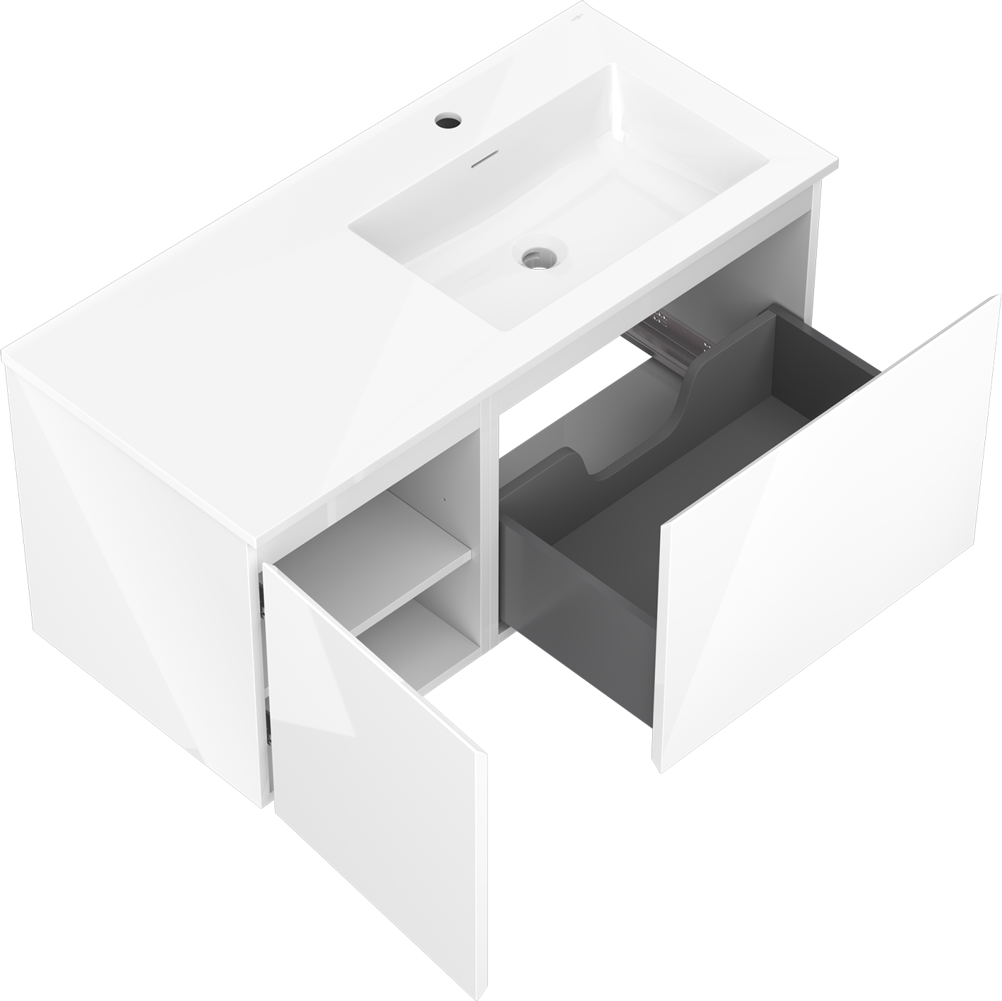 Mexen Orio Badezimmerschrank 100 cm mit Waschbecken Otis rechts, 1S, 1D, weiß glänzend - 91A13-10047-3-BBFF00-W18P00