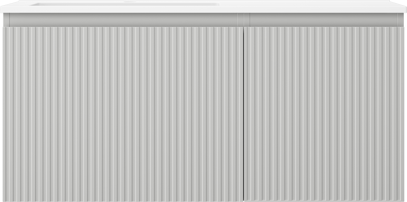 Mexen Rivel Badezimmerschrank 100 cm mit Waschbecken Otis links, 1S, 1D, geriffelt, grau matt/weiß matt