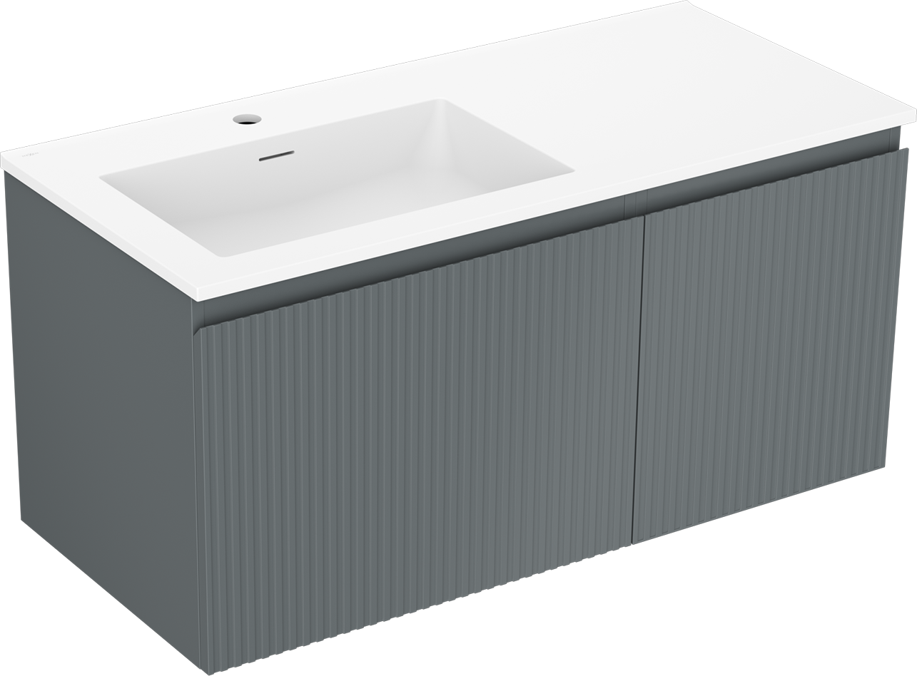 Mexen Rivel Badezimmerschrank 100 cm mit Waschtisch Otis links, 1S, 1D, gerillt, Graphit matt/weiß matt