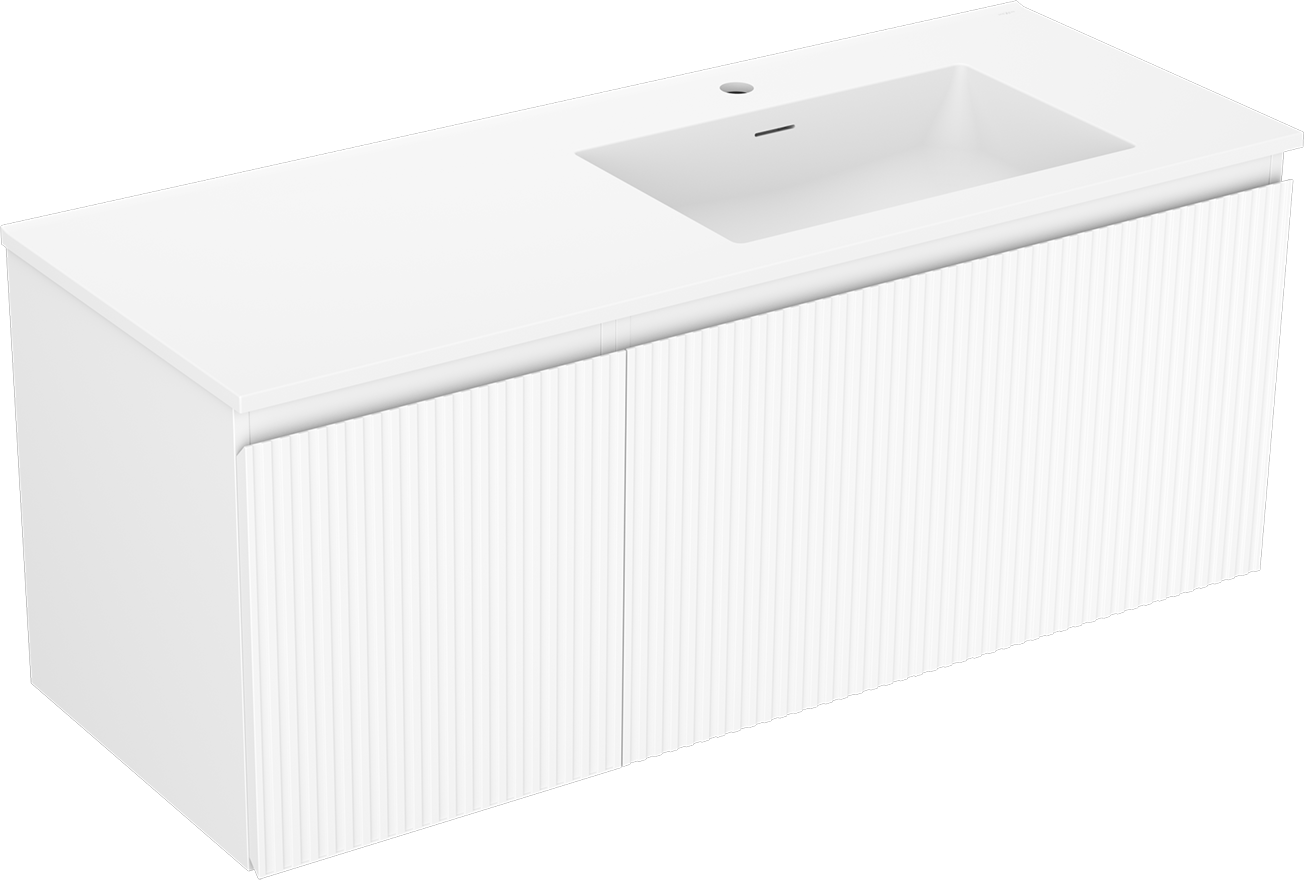 Mexen Rivel Badezimmerschrank 120 cm mit Waschbecken Otis rechts, 1S, 1D, gerillt, weiß matt - 91A23-12047-3-BBFF01-W18P01