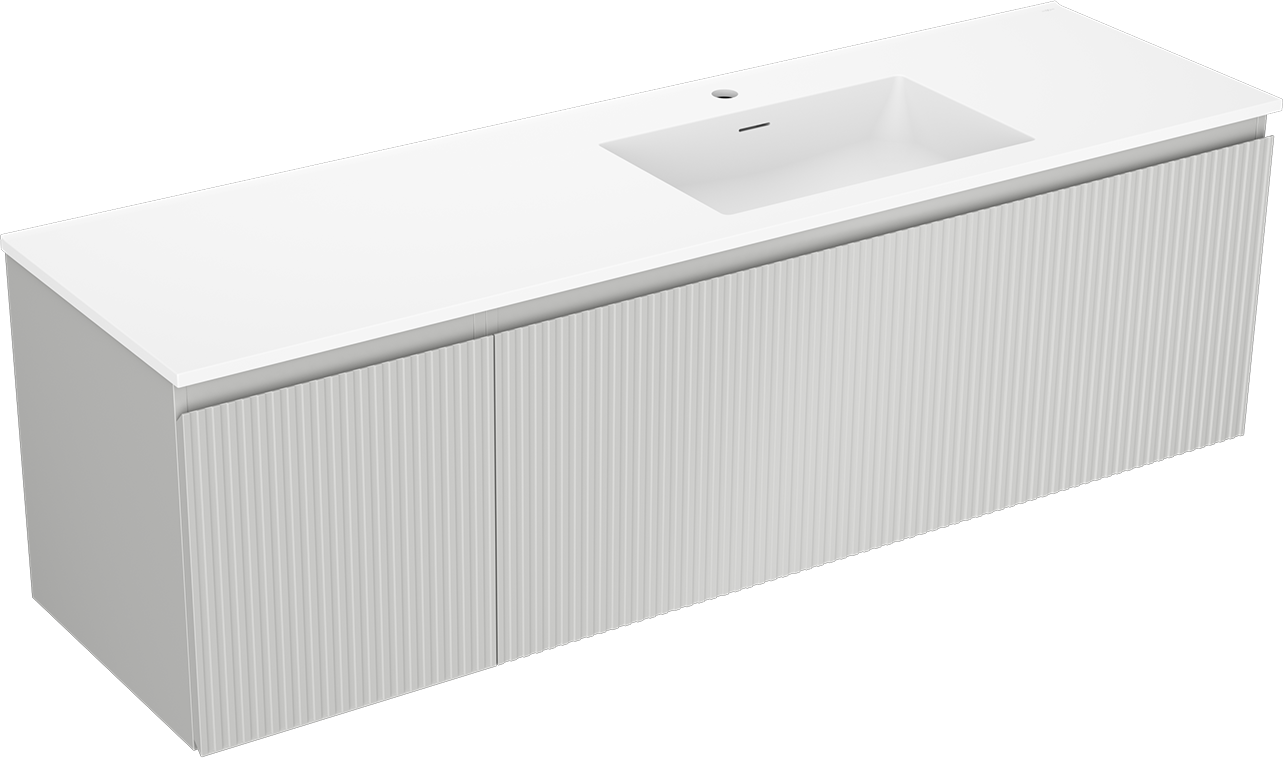 Mexen Rivel Badezimmerschrank 160 cm mit Waschbecken Otis rechts, 1S, 1D, gerillt, grau matt/weiß matt