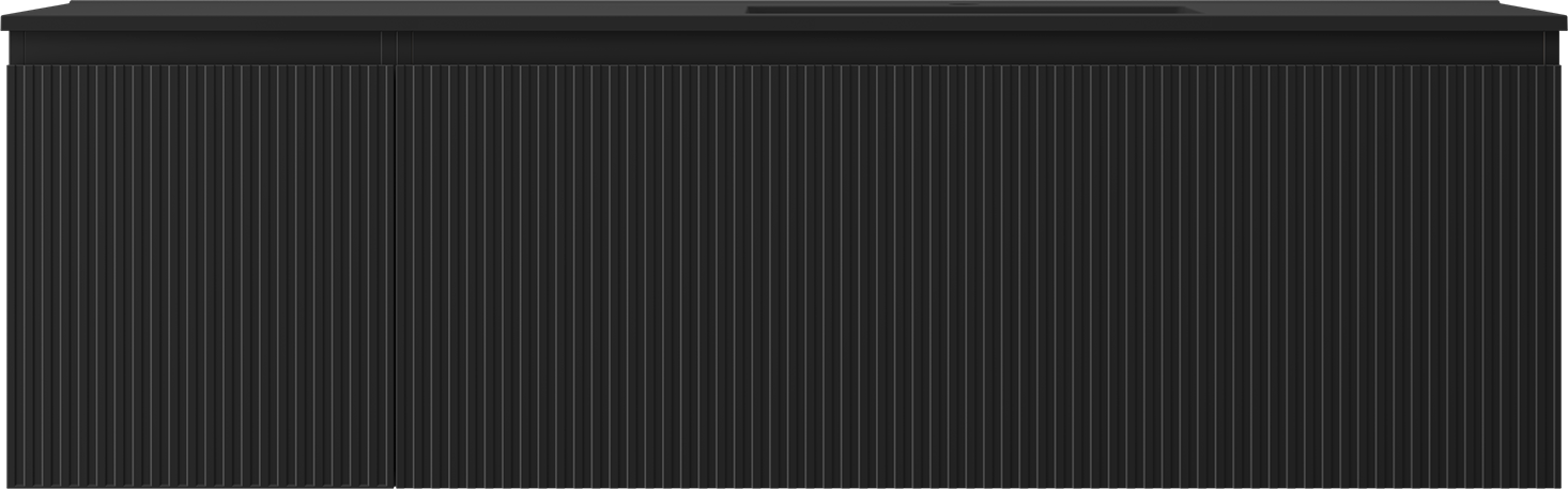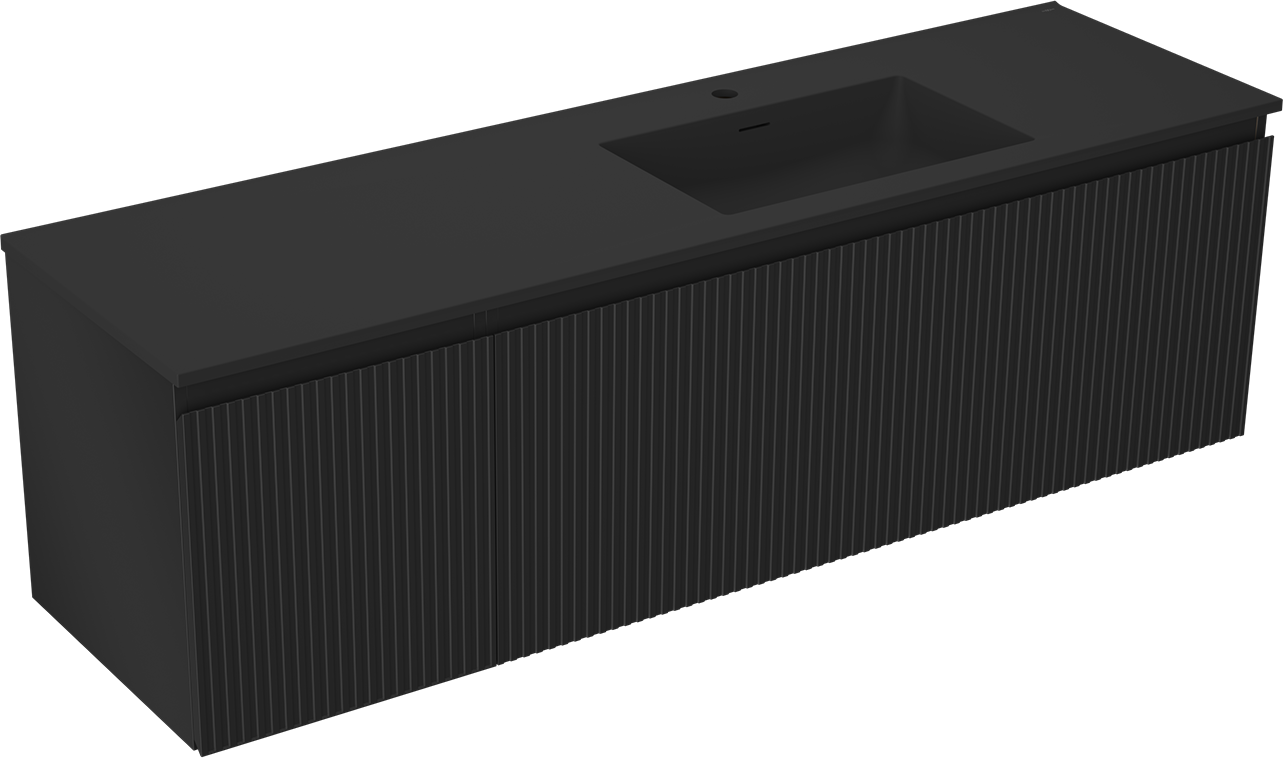 Mexen Rivel Badezimmerschrank 160 cm mit Waschbecken Otis rechts, 1S, 1D, gerillt, schwarz matt - 91A23-16047-3-BBFF71-W18P71