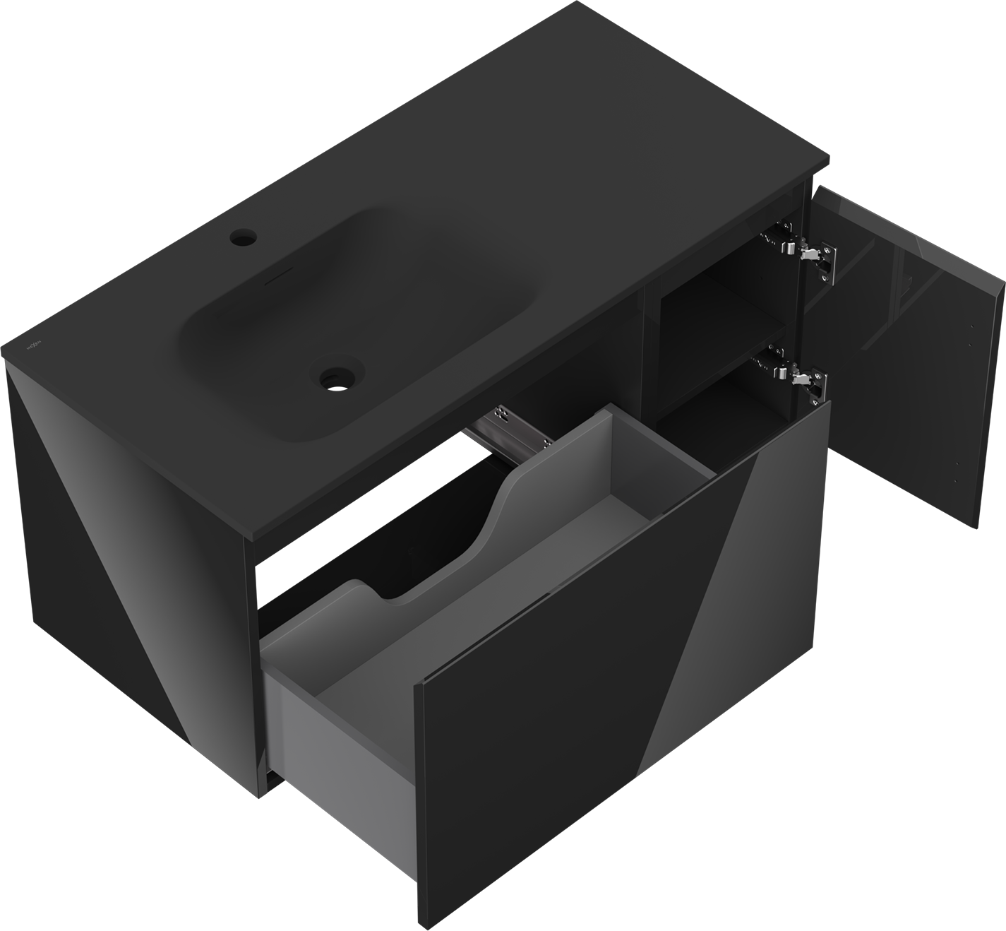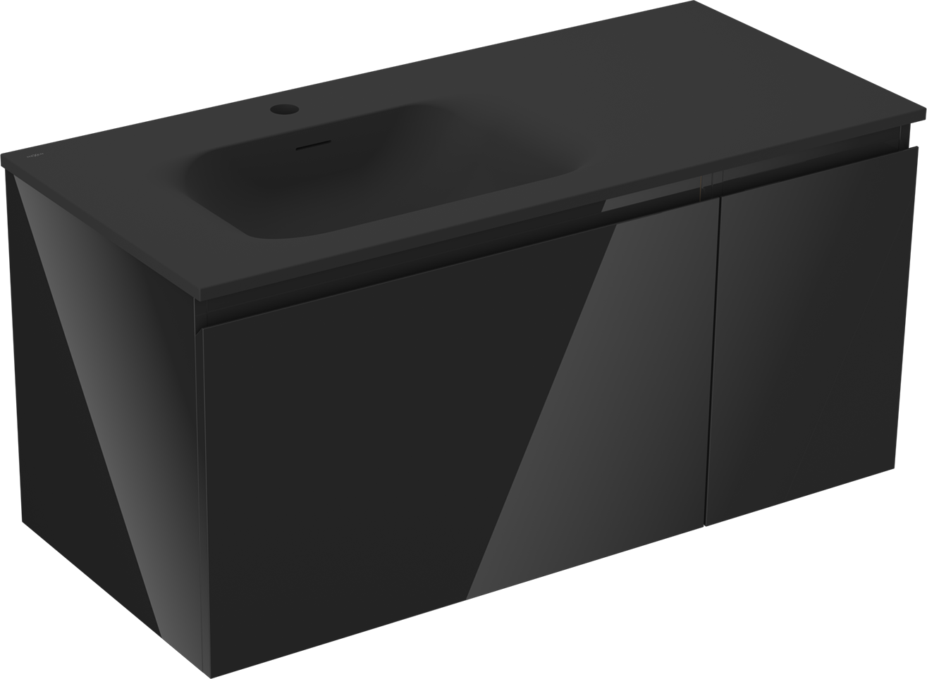 Mexen Orio Badschrank 100 cm mit Waschbecken Vela links, 1S, 1D, schwarz glänzend/schwarz matt - 91A13-10047-3-BBFF70-W23L71