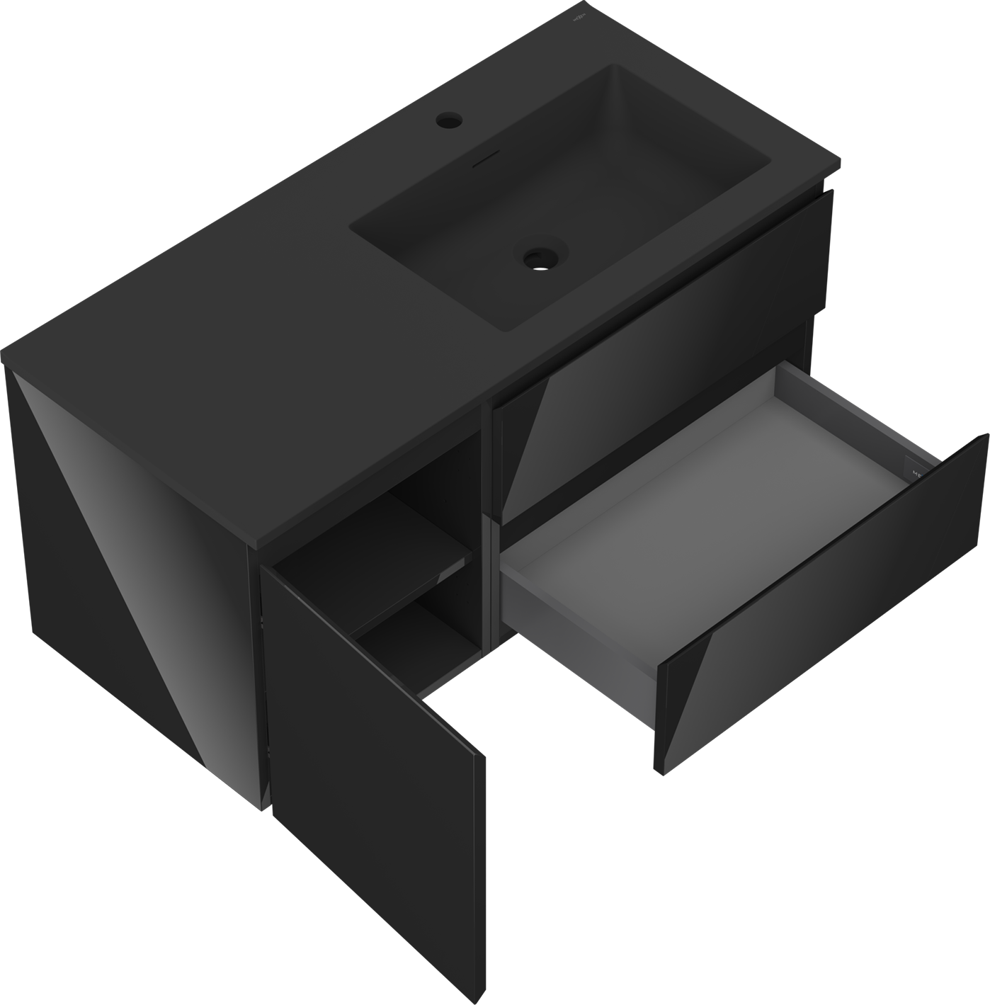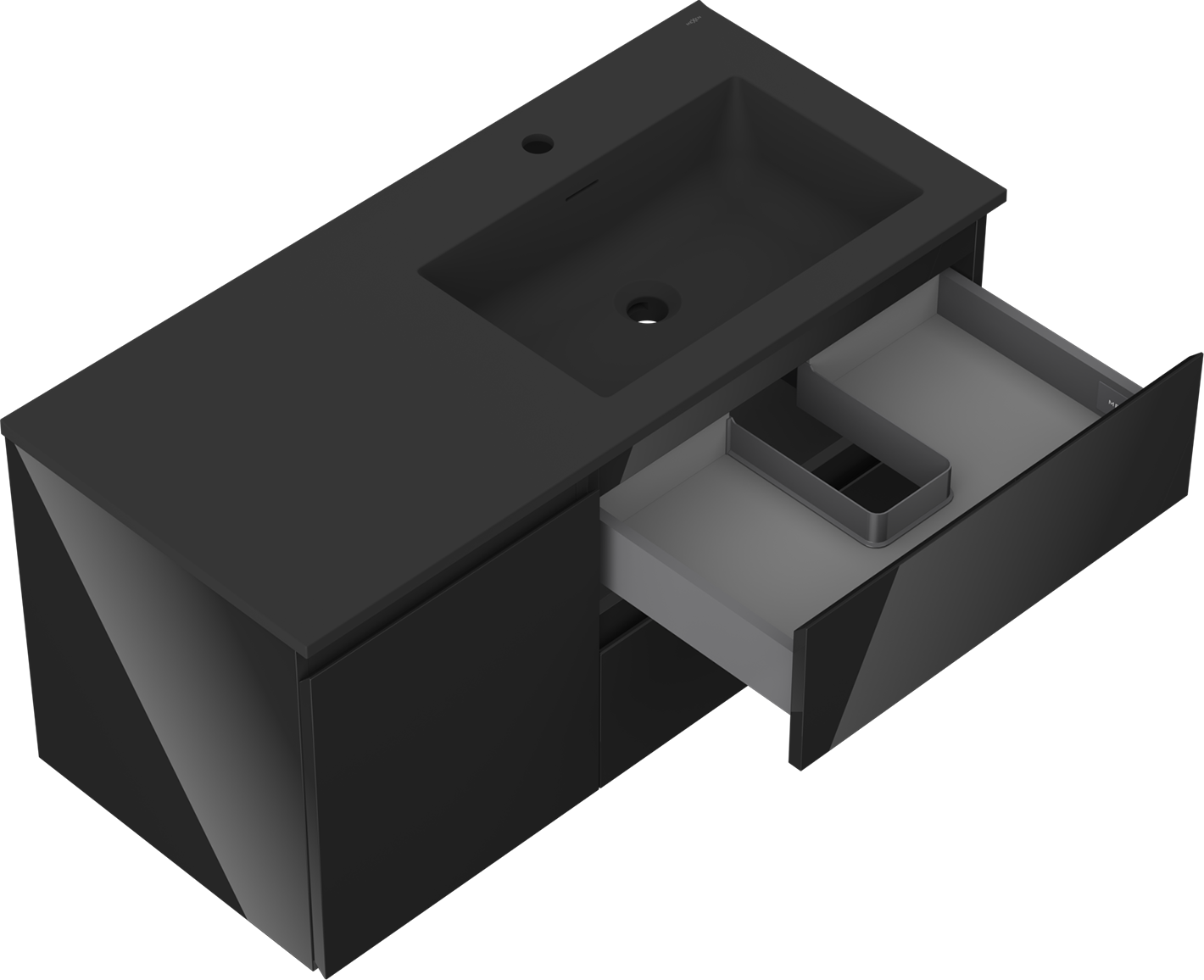 Der Ausschnitt in der Schublade ist so gestaltet, dass er den Siphon aufnehmen kann, der für Waschbeckeninstallationen erforderlich ist. Dadurch kann das Möbelstück voll funktionsfähig montiert werden, ohne auf den Platz in der Schublade zugunsten der Installation verzichten zu müssen.