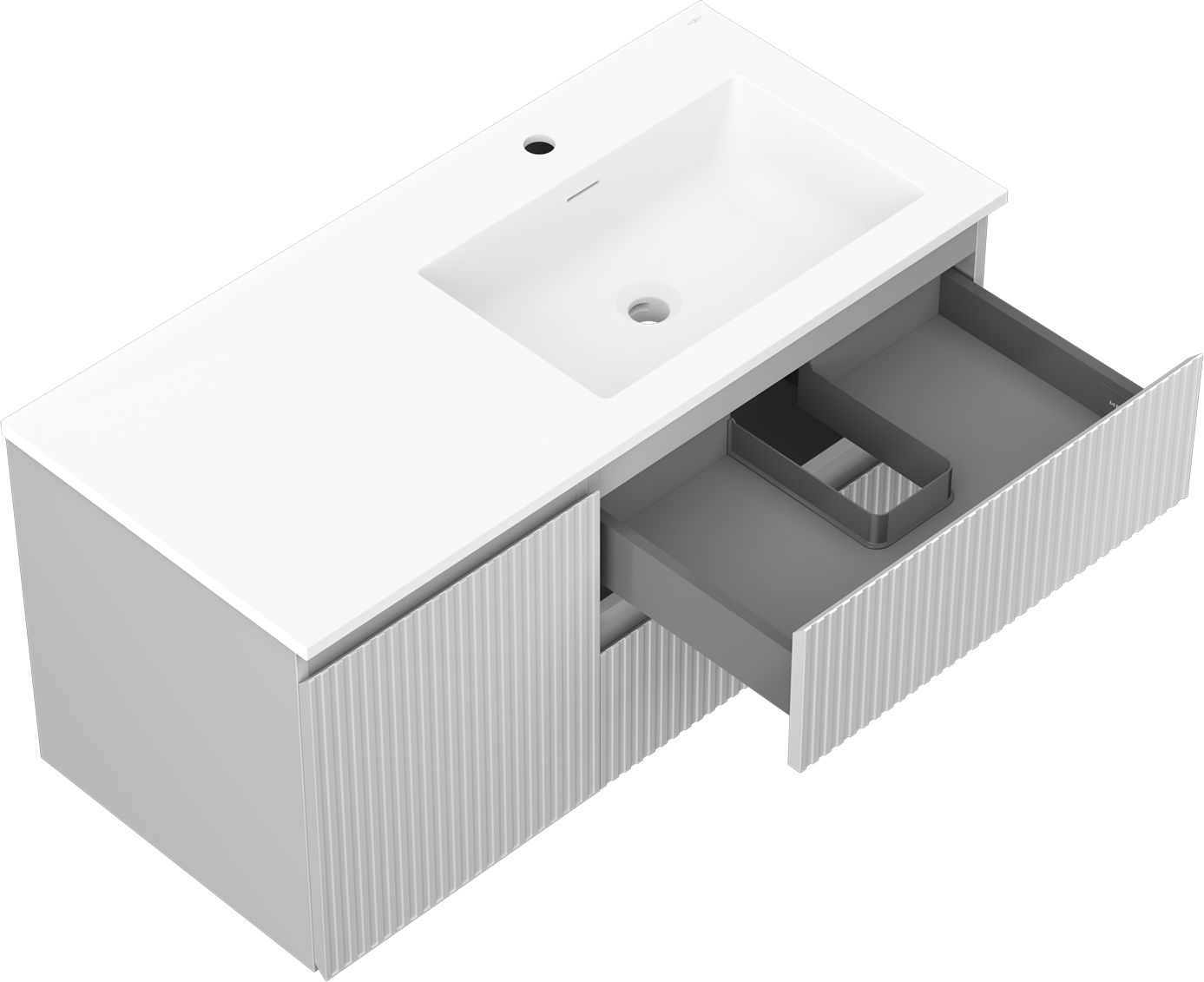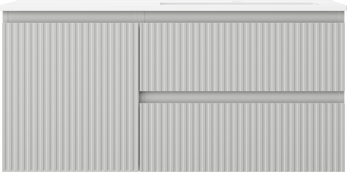 Mexen Rivel Badezimmerschrank 100 cm mit Waschbecken Otis rechts, 2S, 1D, gerippt, grau/weiß matt