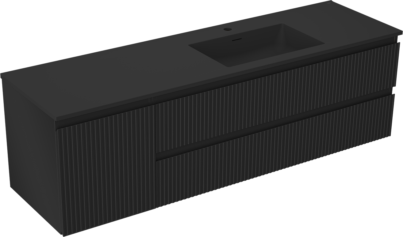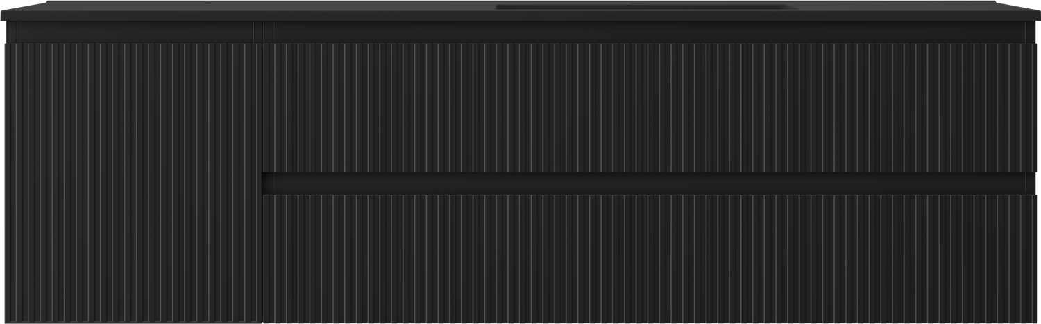 Mexen Rivel Badezimmerschrank 160 cm mit Waschbecken Otis rechts, 2S, 1D, geriffelt, schwarz matt - 91A23-16047-3-BBFFF71-W18P71