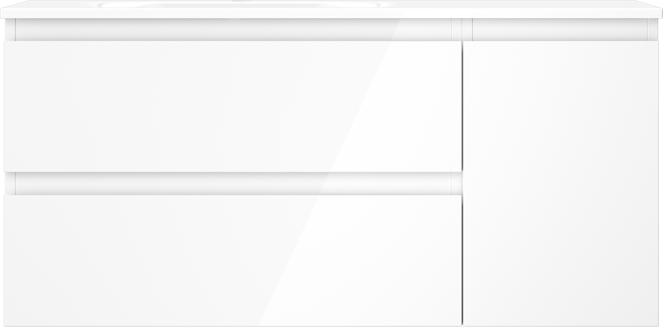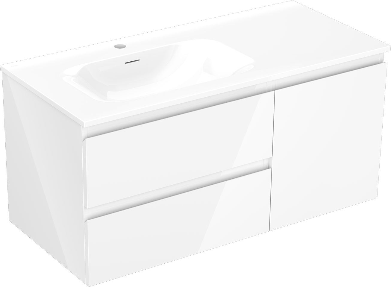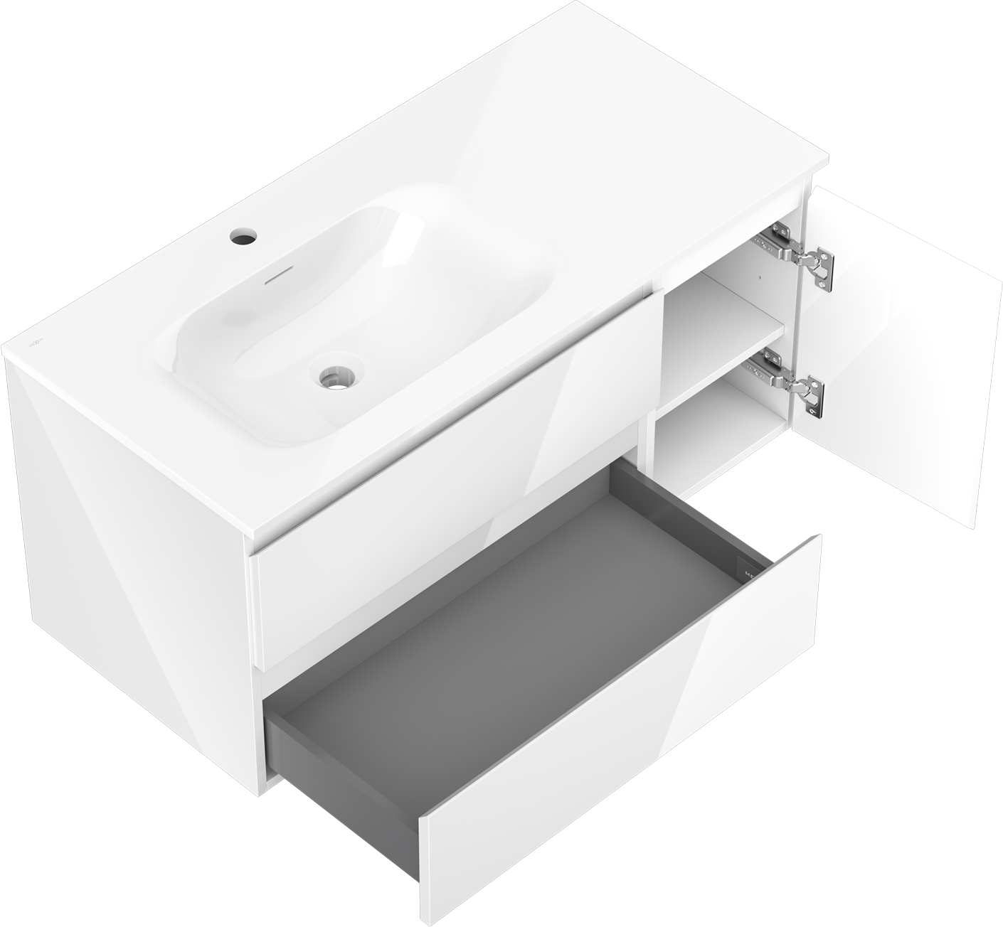 Mexen Orio Badezimmerschrank 100 cm mit Waschbecken Vela links, 2S, 1T, weiß glänzend - 91A13-10047-3-BBFFF00-W23L00