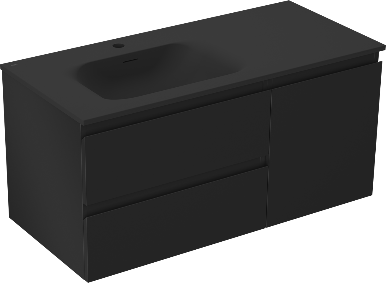Mexen Orio Badezimmerschrank 100 cm mit Waschtisch Vela links, 2S, 1D, schwarz matt - 91A13-10047-3-BBFFF71-W23L71