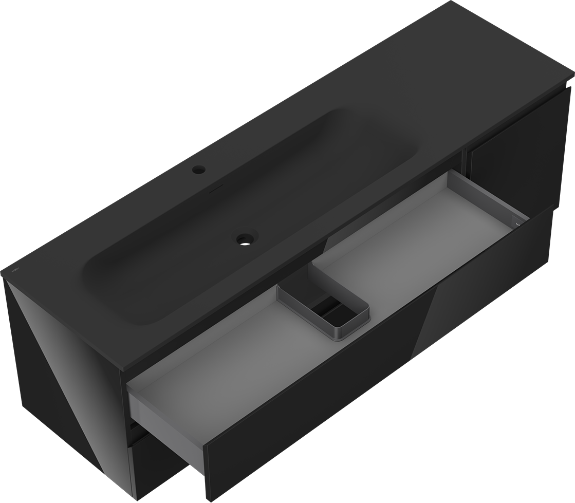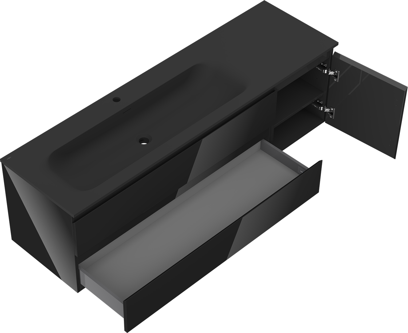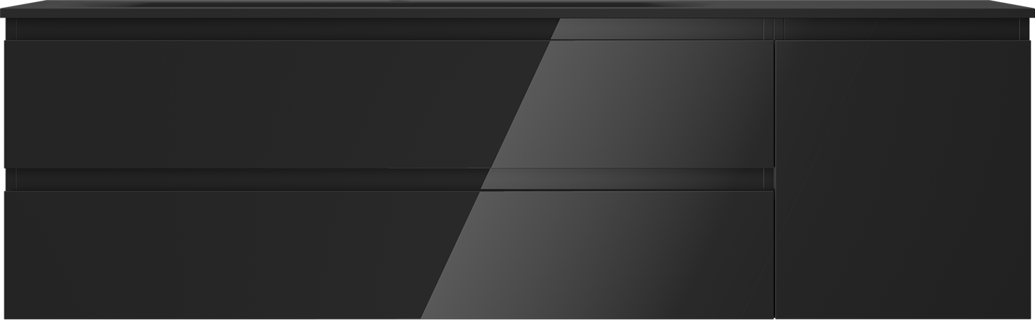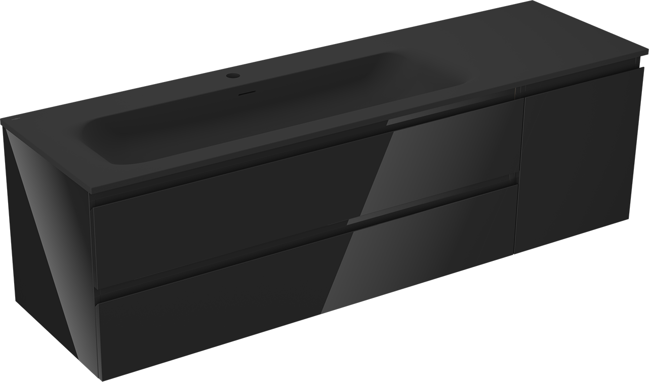 Mexen Orio Waschtisch 160 cm mit Waschbecken Vela links, 2S, 1D, schwarz glänzend/schwarz matt - 91A13-16047-3-BBFFF70-W23L71