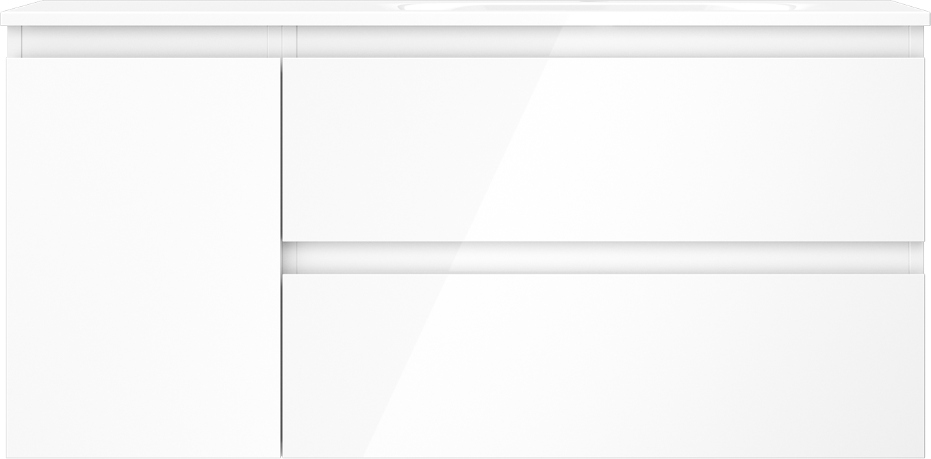 Mexen Orio Badezimmerschrank 100 cm mit Waschbecken Vela rechts, 2S, 1T, weiß glänzend - 91A13-10047-3-BBFFF00-W23P00