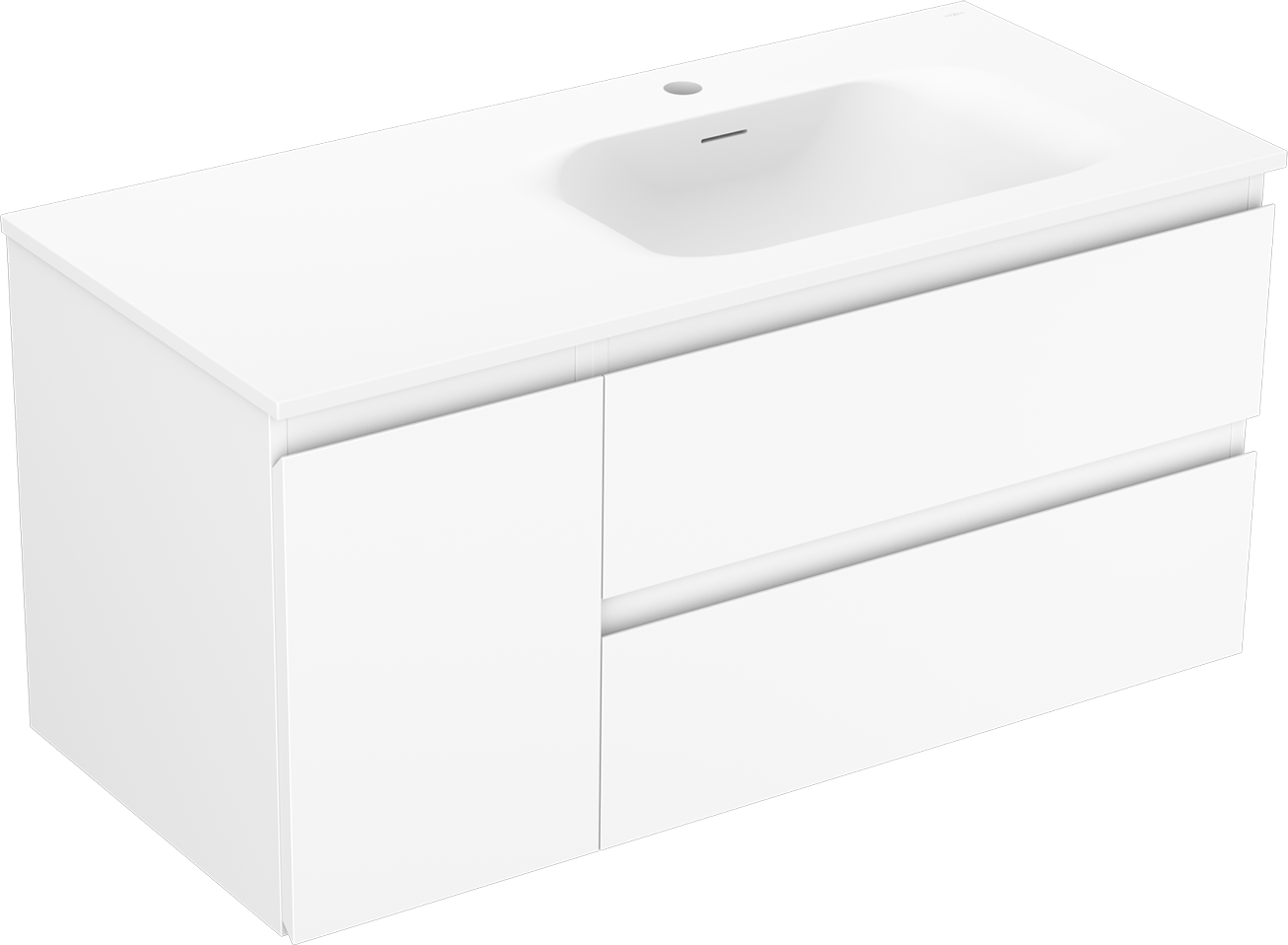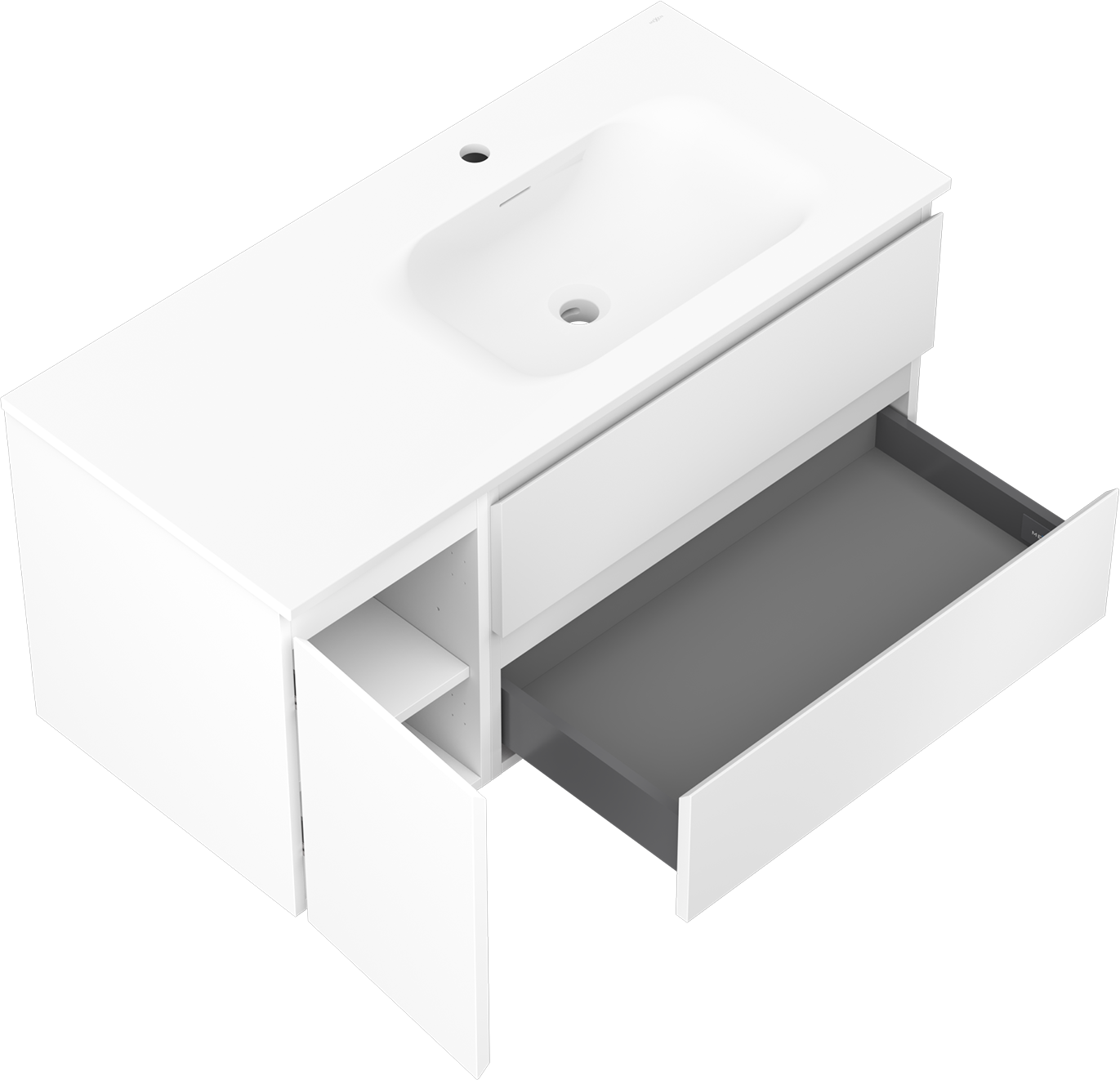 Mexen Orio Badezimmerschrank 100 cm mit Waschbecken Vela rechts, 2S, 1T, weiß matt - 91A13-10047-3-BBFFFF01-W23P01