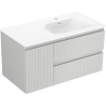 Der Ausschnitt in der Schublade ist so gestaltet, dass er den Siphon aufnehmen kann, der für Waschbeckeninstallationen erforderlich ist. Dadurch kann das Möbelstück voll funktionsfähig montiert werden, ohne auf den Platz in der Schublade zugunsten der Installation verzichten zu müssen.