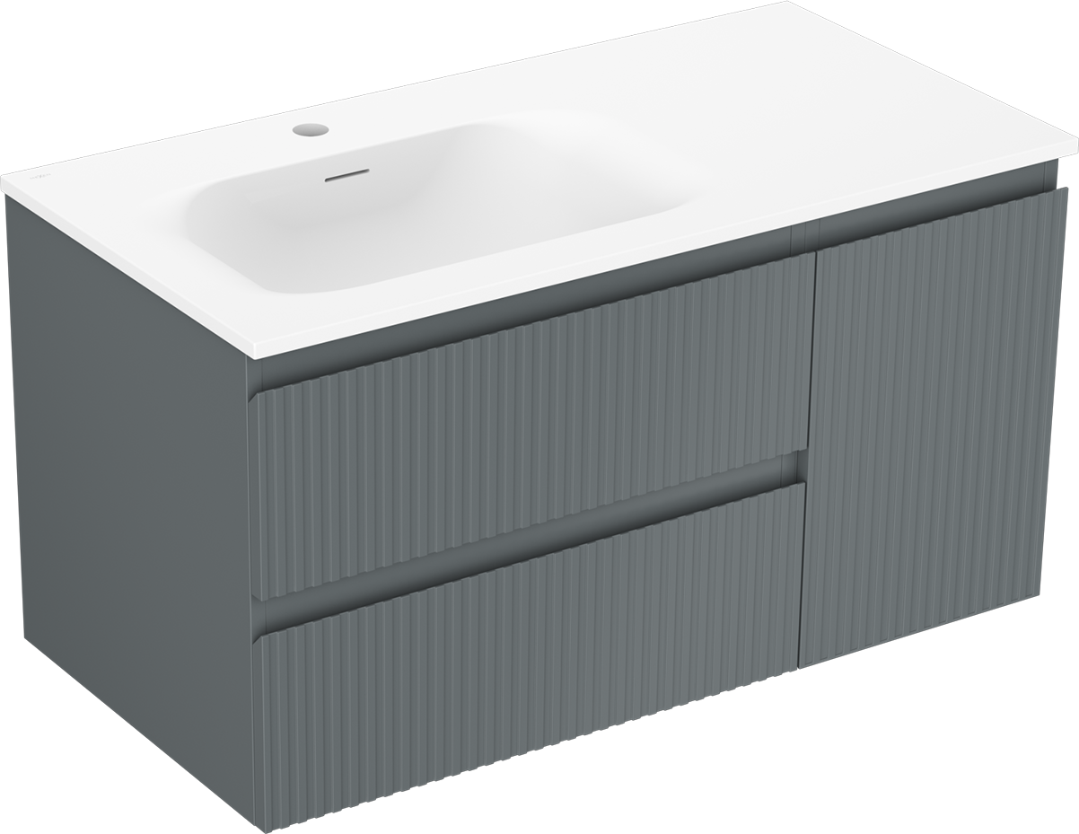 Der Ausschnitt in der Schublade ist so gestaltet, dass er den Siphon aufnehmen kann, der für Waschbeckeninstallationen erforderlich ist. Dadurch kann das Möbelstück voll funktionsfähig montiert werden, ohne auf den Platz in der Schublade zugunsten der Installation verzichten zu müssen.
