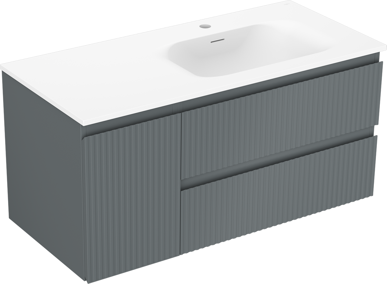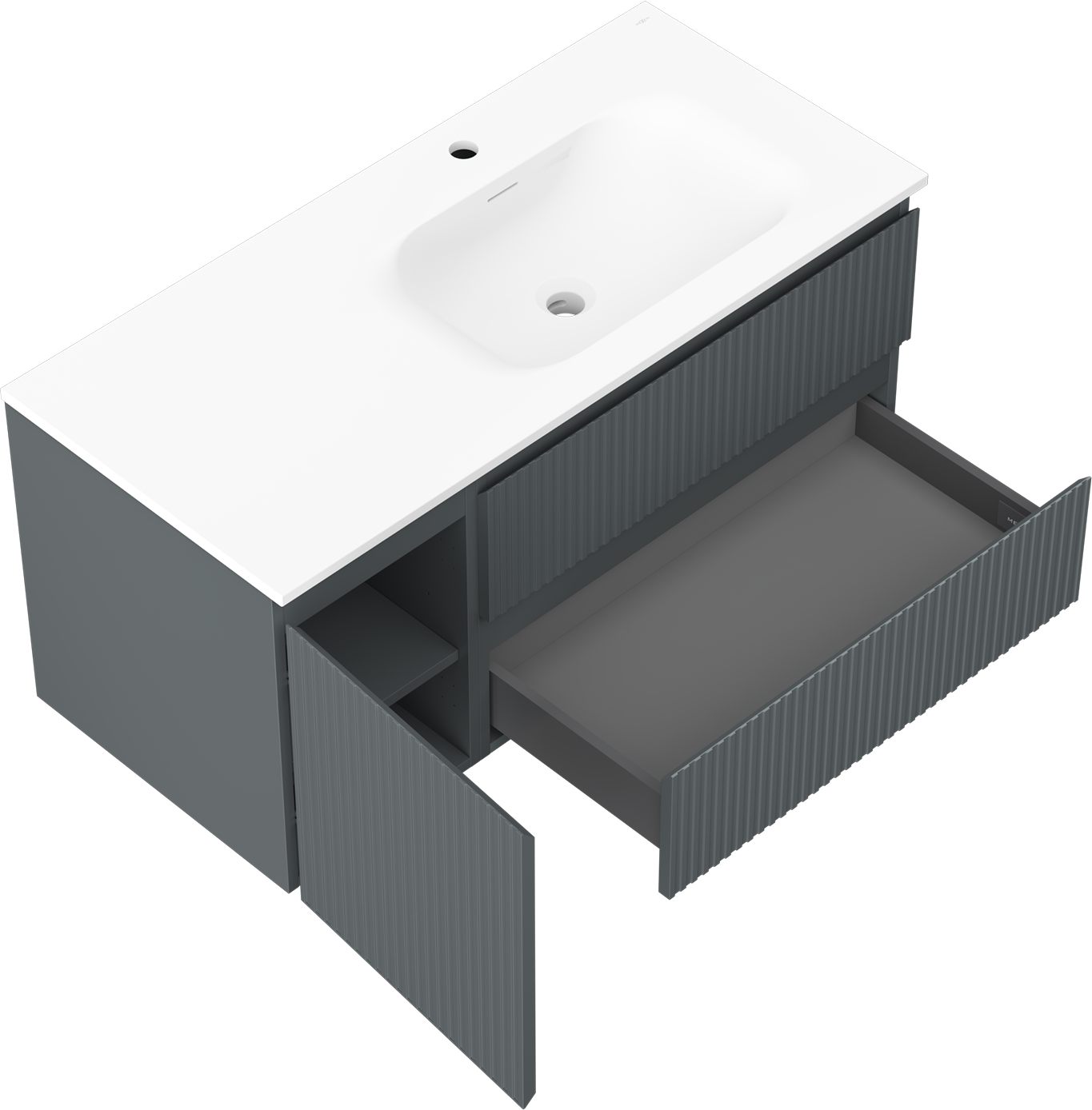 Der Ausschnitt in der Schublade ist so gestaltet, dass er den Siphon aufnehmen kann, der für Waschbeckeninstallationen erforderlich ist. Dadurch kann das Möbelstück voll funktionsfähig montiert werden, ohne auf den Platz in der Schublade zugunsten der Installation verzichten zu müssen.