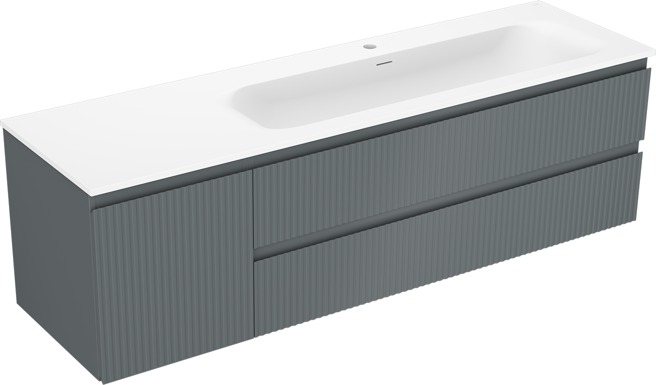 Der Ausschnitt in der Schublade ist so gestaltet, dass er den Siphon aufnehmen kann, der für Waschbeckeninstallationen erforderlich ist. Dadurch kann das Möbelstück voll funktionsfähig montiert werden, ohne auf den Platz in der Schublade zugunsten der Installation verzichten zu müssen.