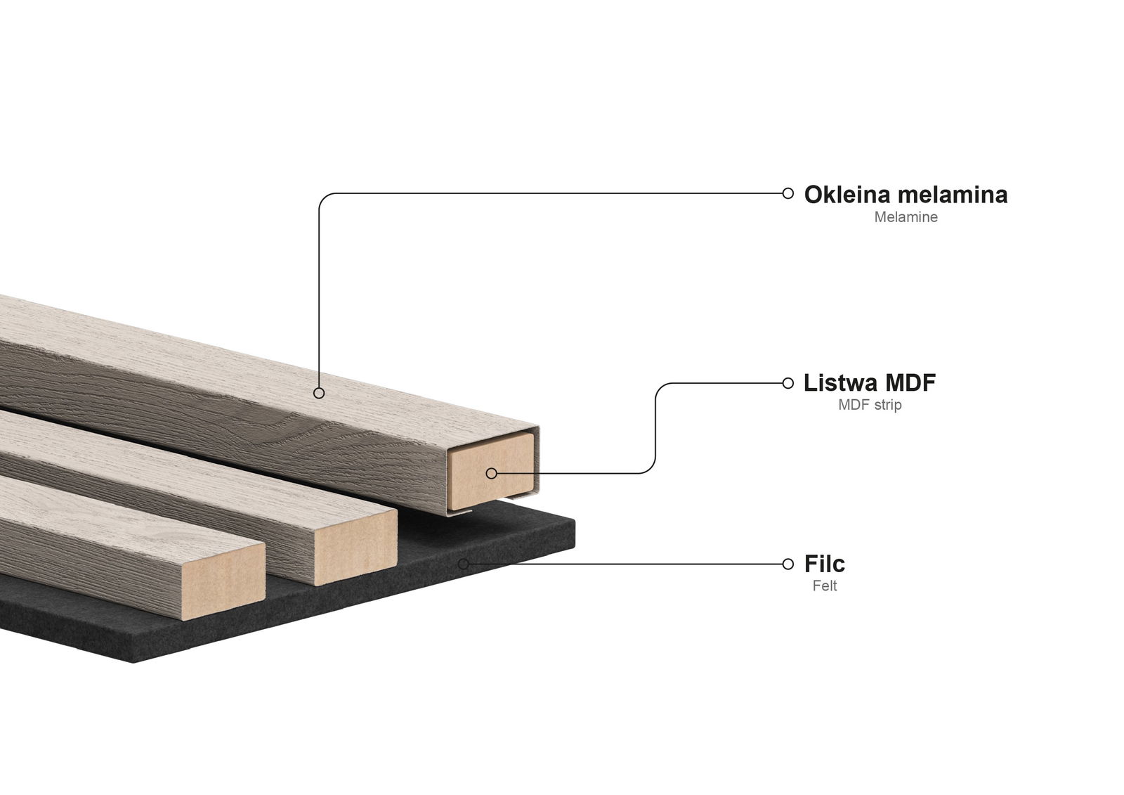 Material der Lamellen: MDF-Leiste + Melaminbeschichtung