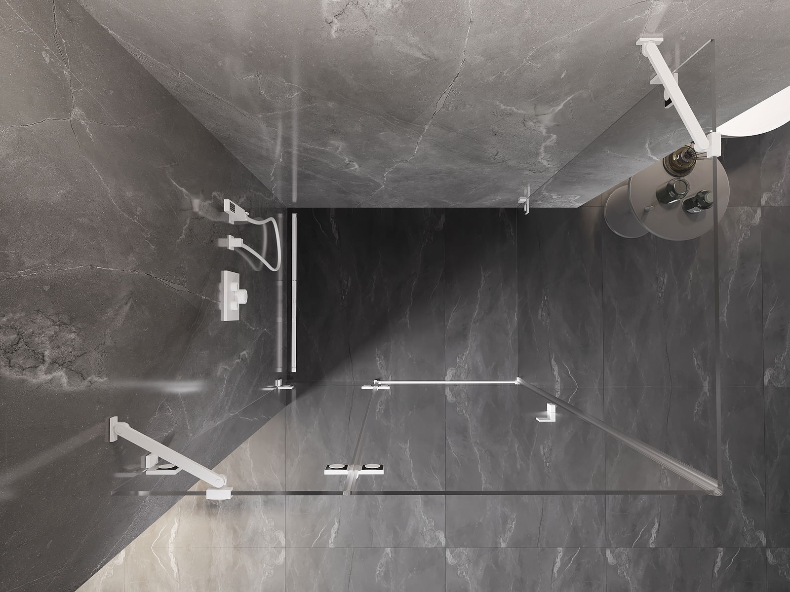 Das Produkt kann je nach Bedarf sowohl auf einer Duschwanne als auch direkt auf dem Boden montiert werden. Die universelle Montagemethode ermöglicht die Anpassung des Produkts an verschiedene Arten von Badezimmern und Raumkonfigurationen.