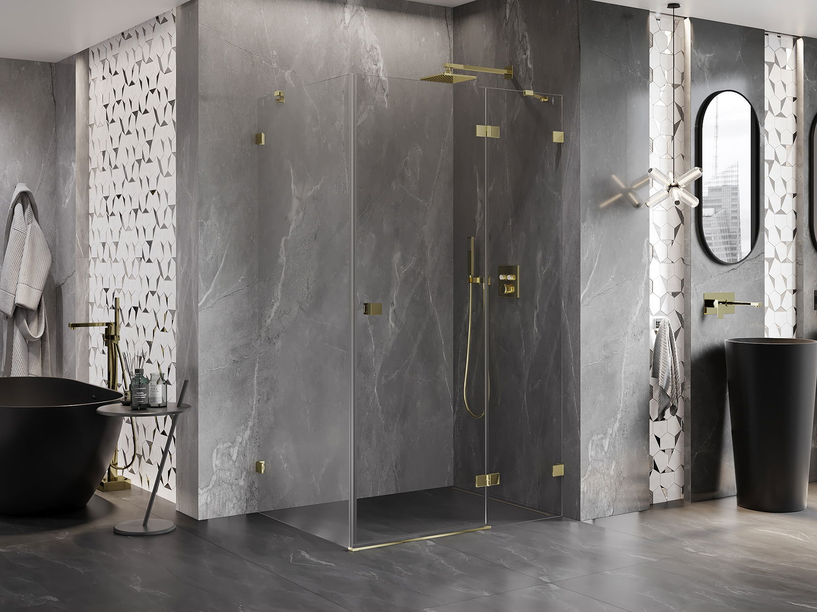 Der handliche und bequeme Griff besteht aus langlebigem und widerstandsfähigem Metall. Die modische Form in Kombination mit einer farblich auf die Profile abgestimmten Oberflächenveredelung verleiht dem Ganzen ein modernes und stilvolles Erscheinungsbild und betont die Ästhetik jedes Badezimmers.