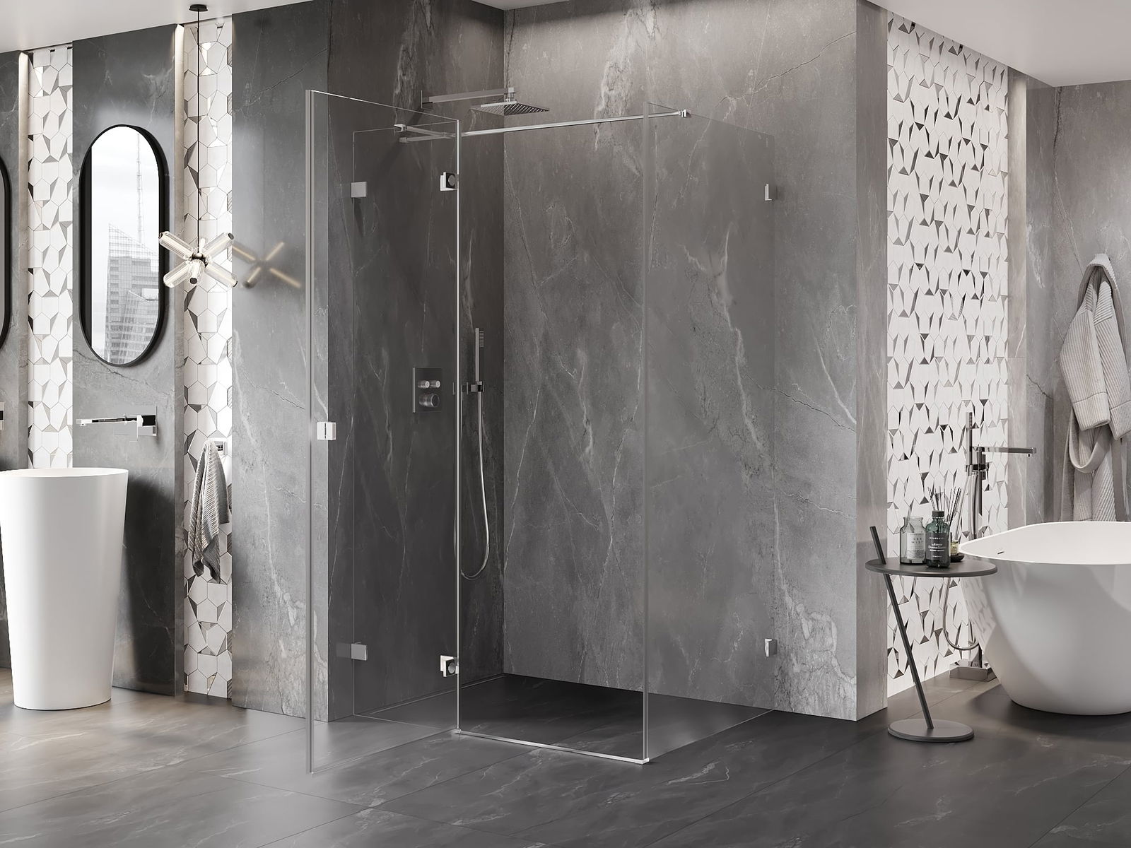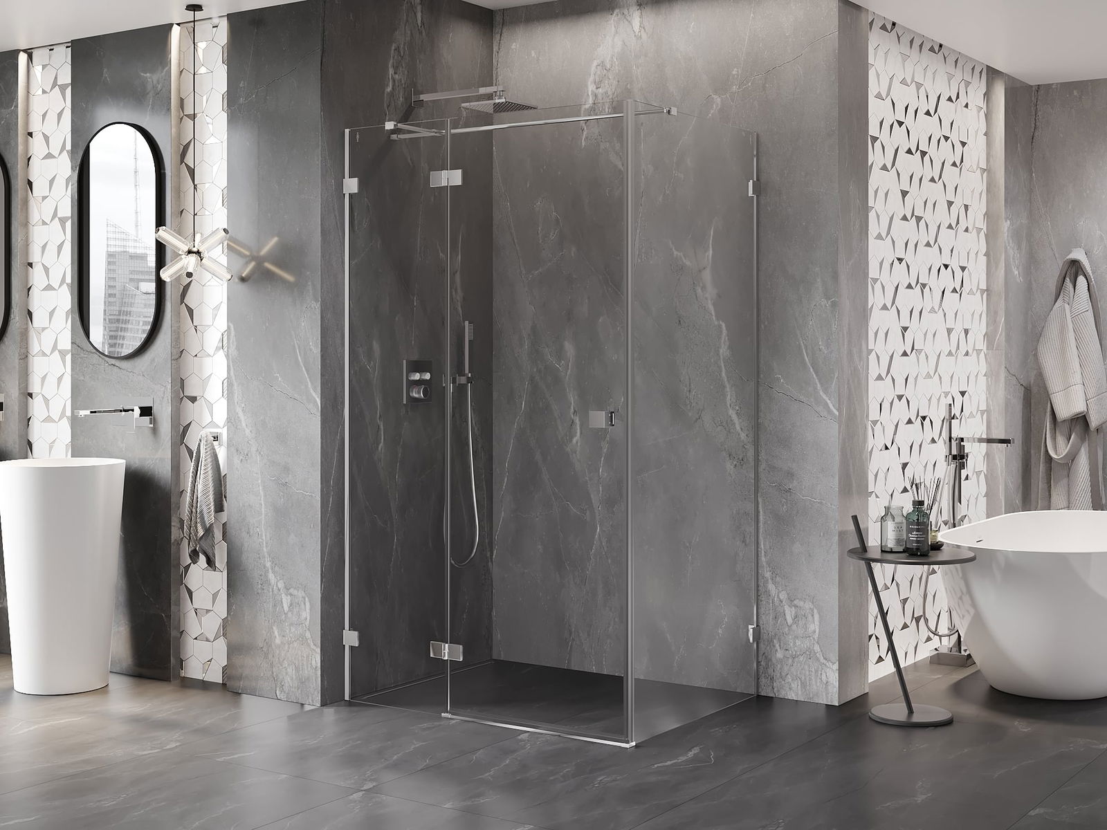 Der handliche und bequeme Griff besteht aus langlebigem und widerstandsfähigem Metall. Die modische Form in Kombination mit einer farblich auf die Profile abgestimmten Oberflächenveredelung verleiht dem Ganzen ein modernes und stilvolles Erscheinungsbild und betont die Ästhetik jedes Badezimmers.