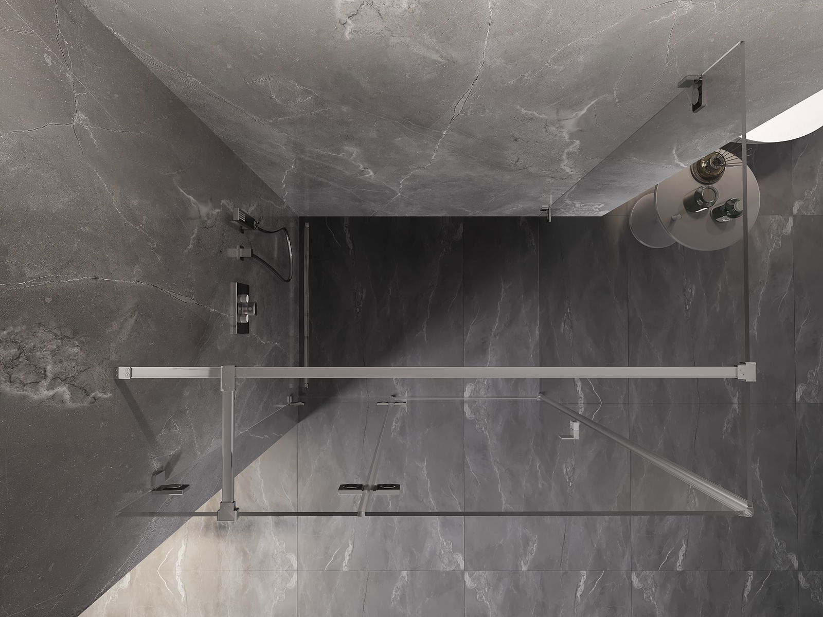 Das Produkt kann je nach Bedarf sowohl auf einer Duschwanne als auch direkt auf dem Boden montiert werden. Die universelle Montagemethode ermöglicht die Anpassung des Produkts an verschiedene Arten von Badezimmern und Raumkonfigurationen.