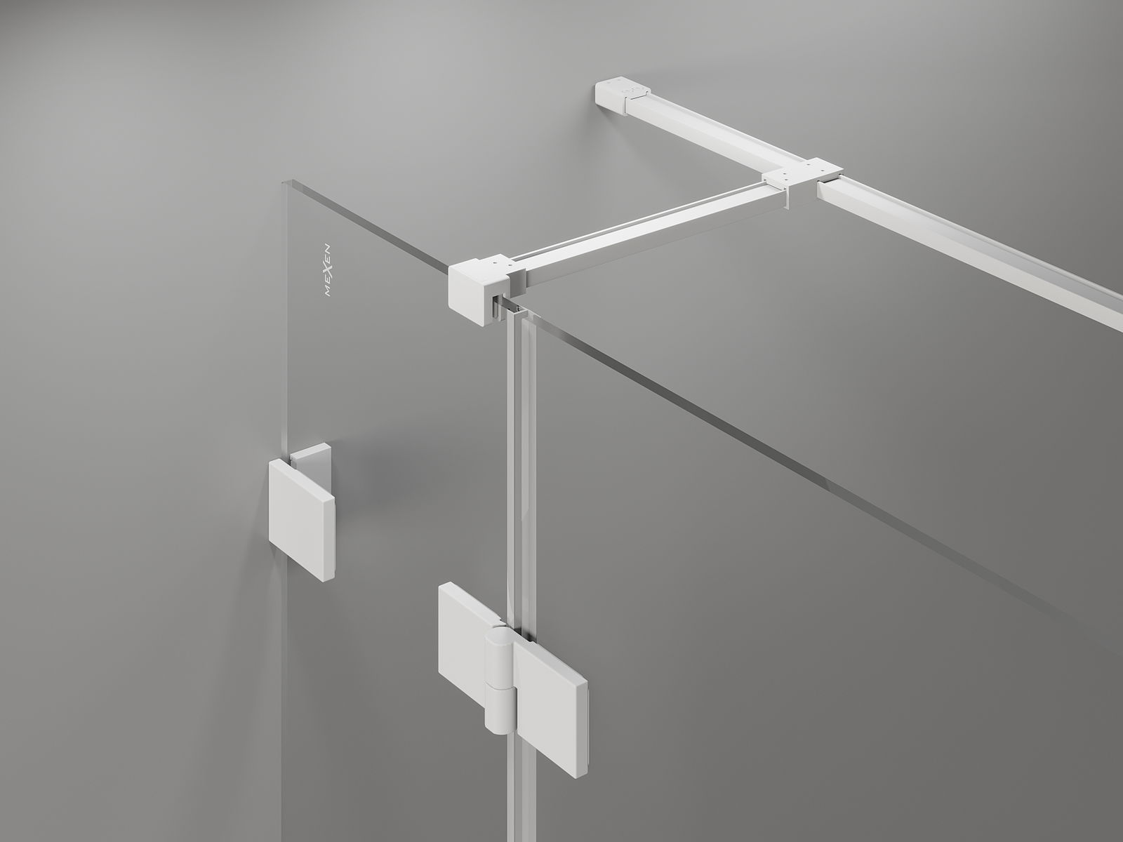 Klammern und Scharniere bestehen aus sehr haltbarem Messing und bilden zudem eine bündige Glasfläche. Dies ist eine ausgezeichnete Wahl, die Eleganz, Haltbarkeit und modernes Design verbindet. Dank solcher Lösungen gewinnt die Dusche an Ästhetik und erleichtert gleichzeitig die Reinigung.