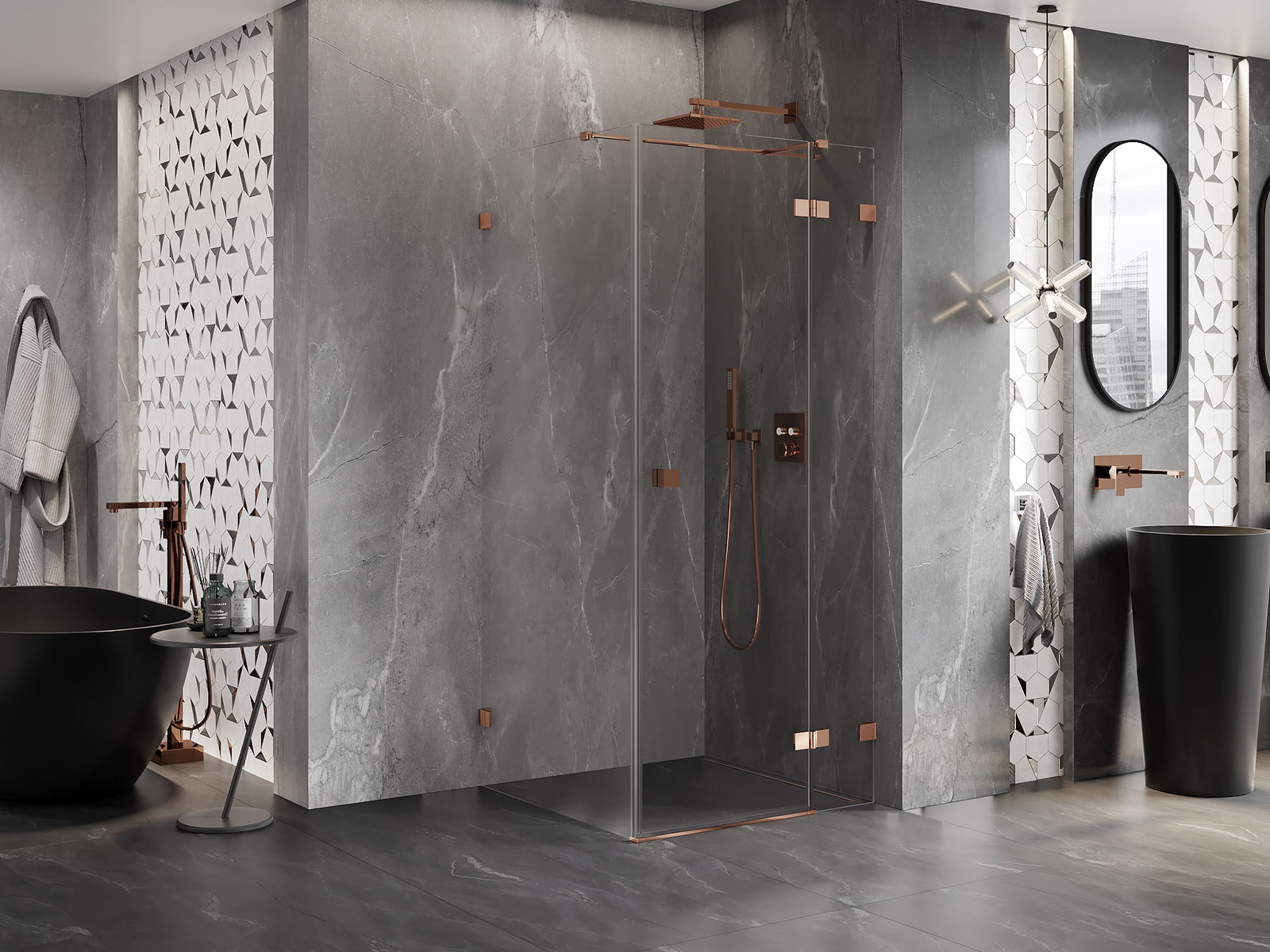 Klammern und Scharniere bestehen aus sehr haltbarem Messing und bilden zudem eine bündige Glasfläche. Dies ist eine ausgezeichnete Wahl, die Eleganz, Haltbarkeit und modernes Design verbindet. Dank solcher Lösungen gewinnt die Dusche an Ästhetik und erleichtert gleichzeitig die Reinigung.