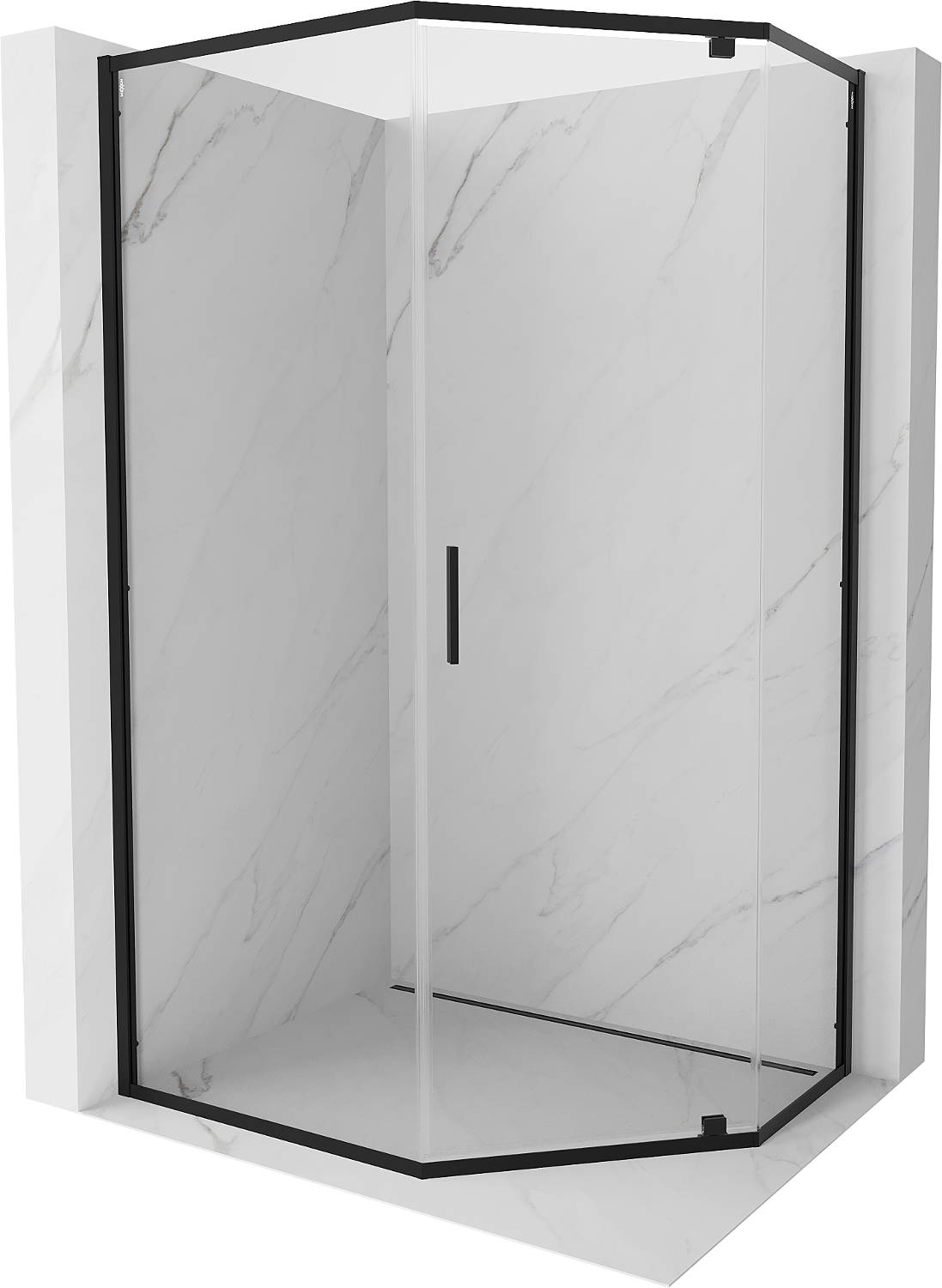 Mexen Exo Fünfeck-Duschkabine mit Klapptür 100 x 90 cm, transparent, schwarz - 812-100-090-70-00