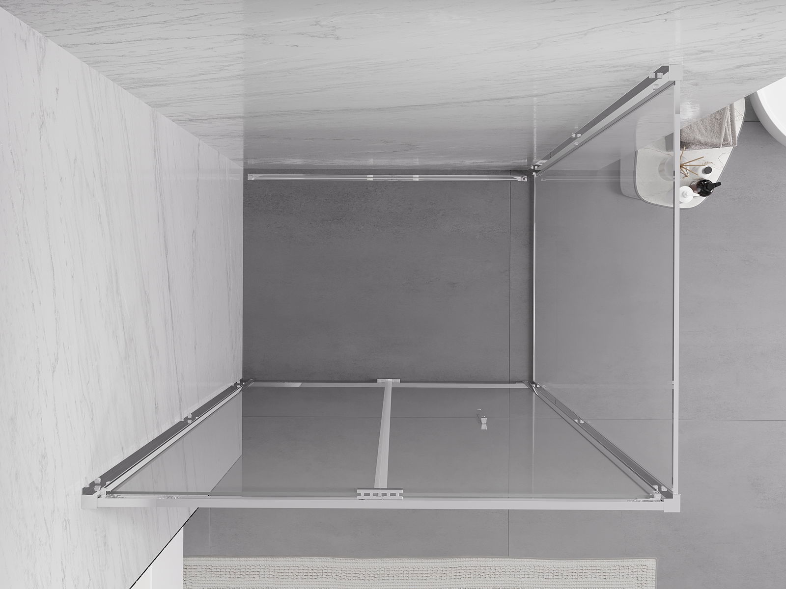 Das Produkt kann je nach Bedarf sowohl auf einer Duschwanne als auch direkt auf dem Boden montiert werden. Die universelle Montagemethode ermöglicht die Anpassung des Produkts an verschiedene Arten von Badezimmern und Raumkonfigurationen.