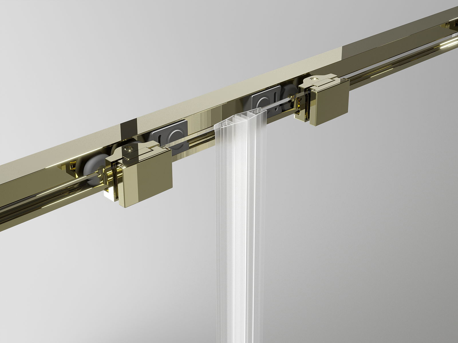 Schiebetüren bewegen sich auf speziellen Führungen und benötigen keinen zusätzlichen Raum, um sie zu öffnen, daher eignen sie sich gut für kleinere Badezimmer. Dank der doppelten Rollen mit Metallkörper ist ihre Bewegung fließend.
