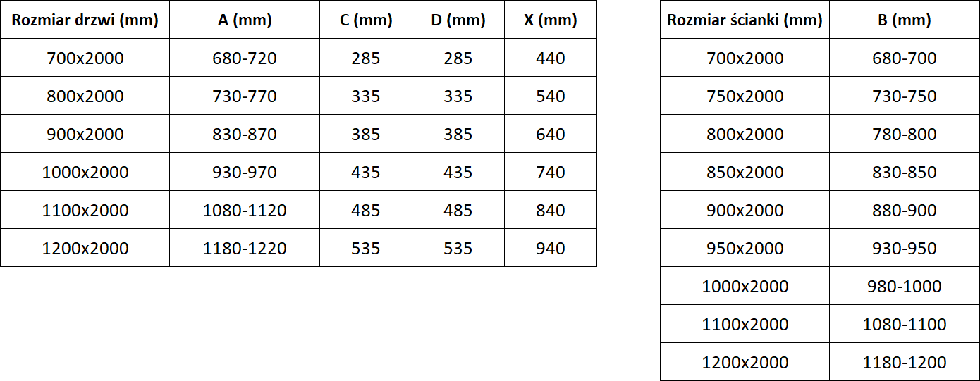 Größe: 110x70 cm (Tür 110 cm, Wand 70 cm)