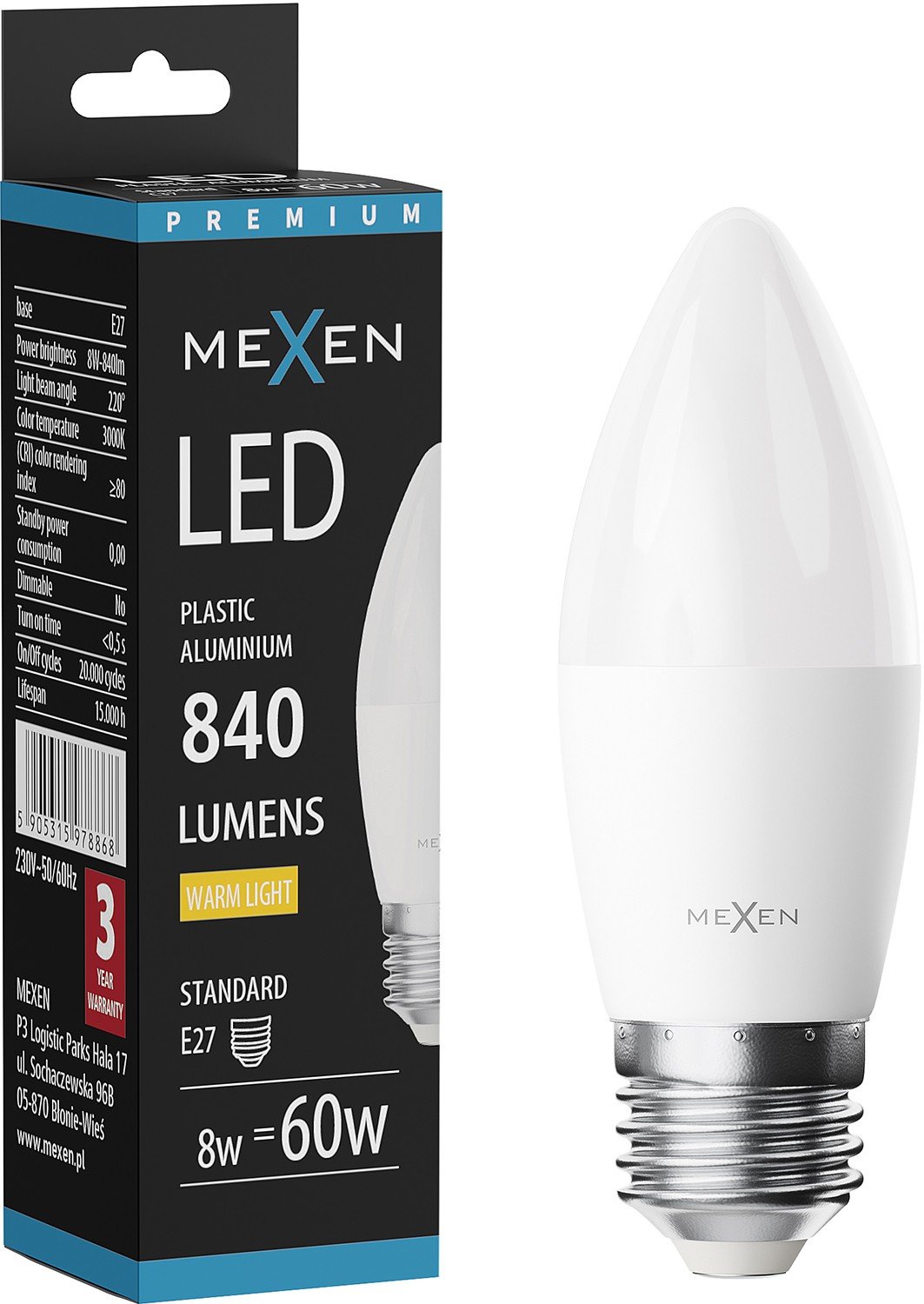 Mexen Nova LED-Glühbirne E27, C37, 8W, Warm - 3000K, 840 lm - L102-E27-0830-01