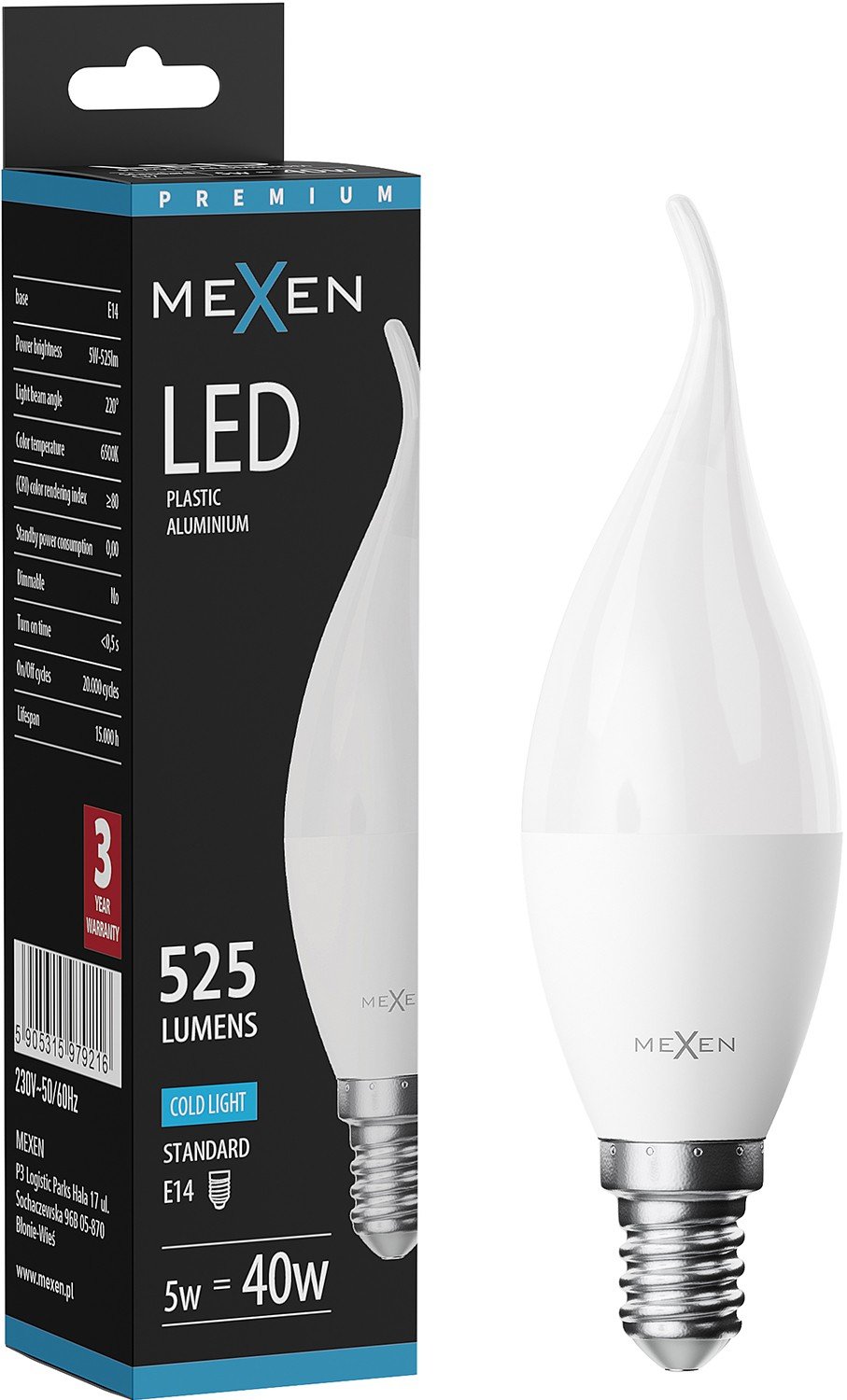 Mexen Nova LED-Kerze E14, C37, 5W, Kalt - 6500K, 525 lm - L106-E14-0565-01