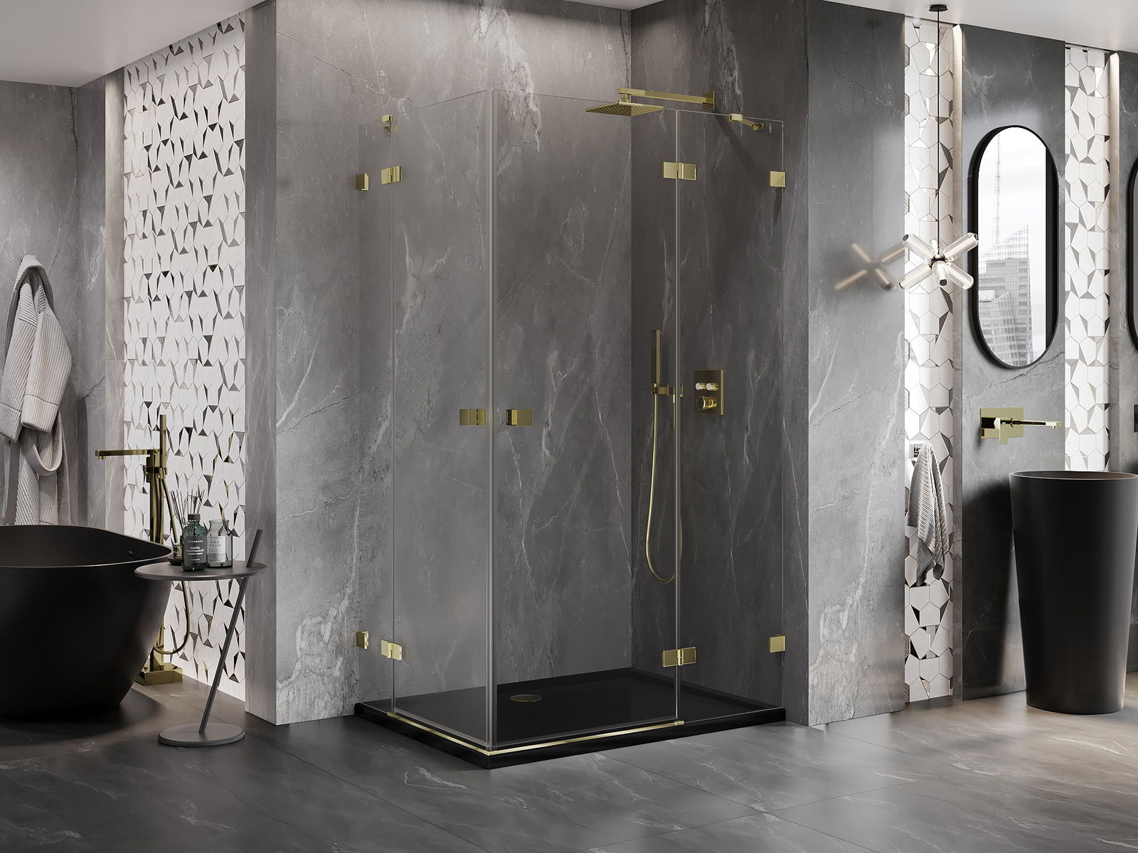 Mexen Lunar Duo Duschkabine schwenkbar rechts 100 x 95 cm, transparent, gold - 834-100P-095L-50-00